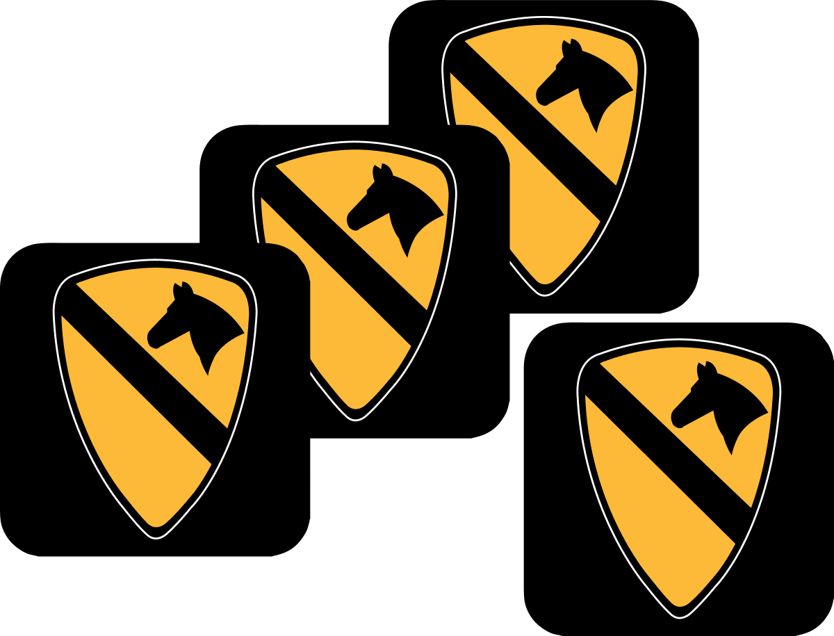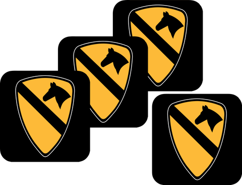 These Army 1st Cavalry Coaster drink coasters are proudly made in the USA and their quality is guaranteed! Each of our military drink coasters measure 3 ¾”, has a beautiful gloss finish and is manufactured with a soft cork underside to protect your furniture and prevent slipping. This set of coasters is accompanied by a handsome wood coaster holder display rack as shown in our picture above. We are proud to offer these U.S. Army drink coasters and hope that you’ll enjoy them for years to come. Purchase for yourself or as a Military Gift for a friend or loved one.