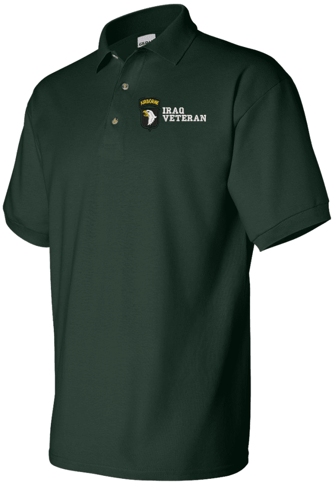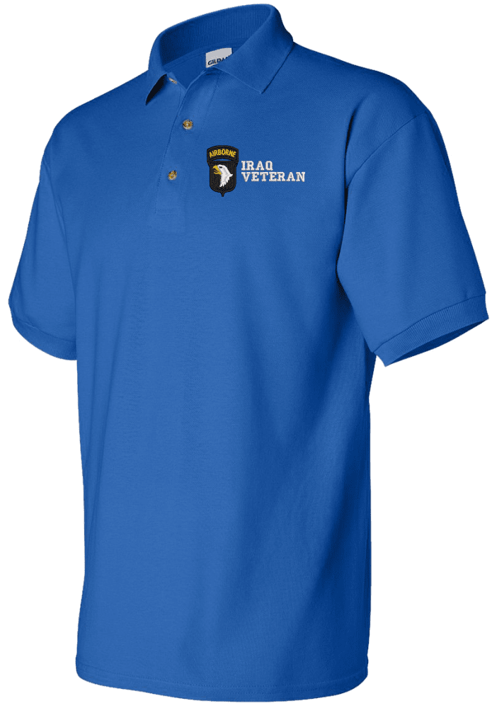 Note: Some of the Color Options pictured may not be available. Available Color Options are listed on the drop down menu above.MilitaryBest is proud to offer this quality 101st Airborne Division Iraq Veteran Polo. Each Polo is available in either 100% Ringspun cotton pique or a 50/50 cotton/polyester blend. These quality Military Polos are proudly embroidered at our facilities in Scottsboro, AL. Support the Army MWR program by purchasing only from Licensed Vendors.