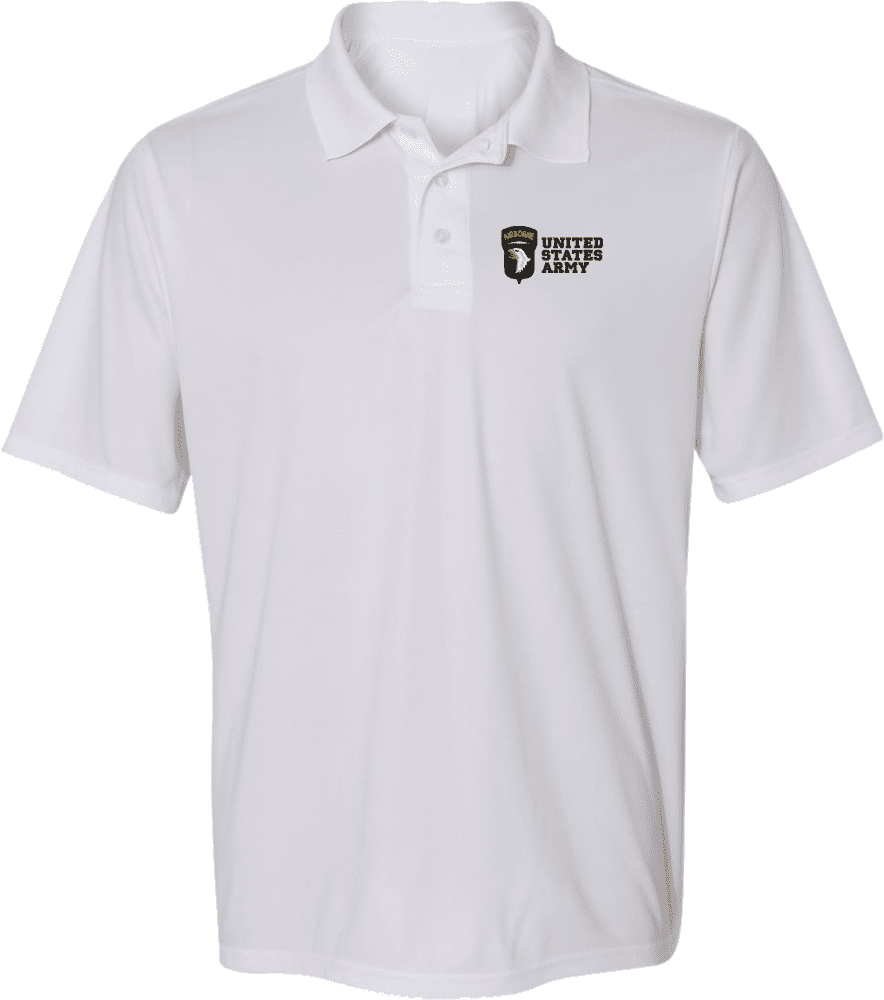 MilitaryBest is proud to offer this quality 101st Airborne Division United States Army Polo. This Polo is made using 50/50 cotton/polyester moisture wicking material.These quality Military Polos are proudly embroidered at our facilities in Scottsboro, AL. Support the Army MWR program by purchasing only from Licensed Vendors.