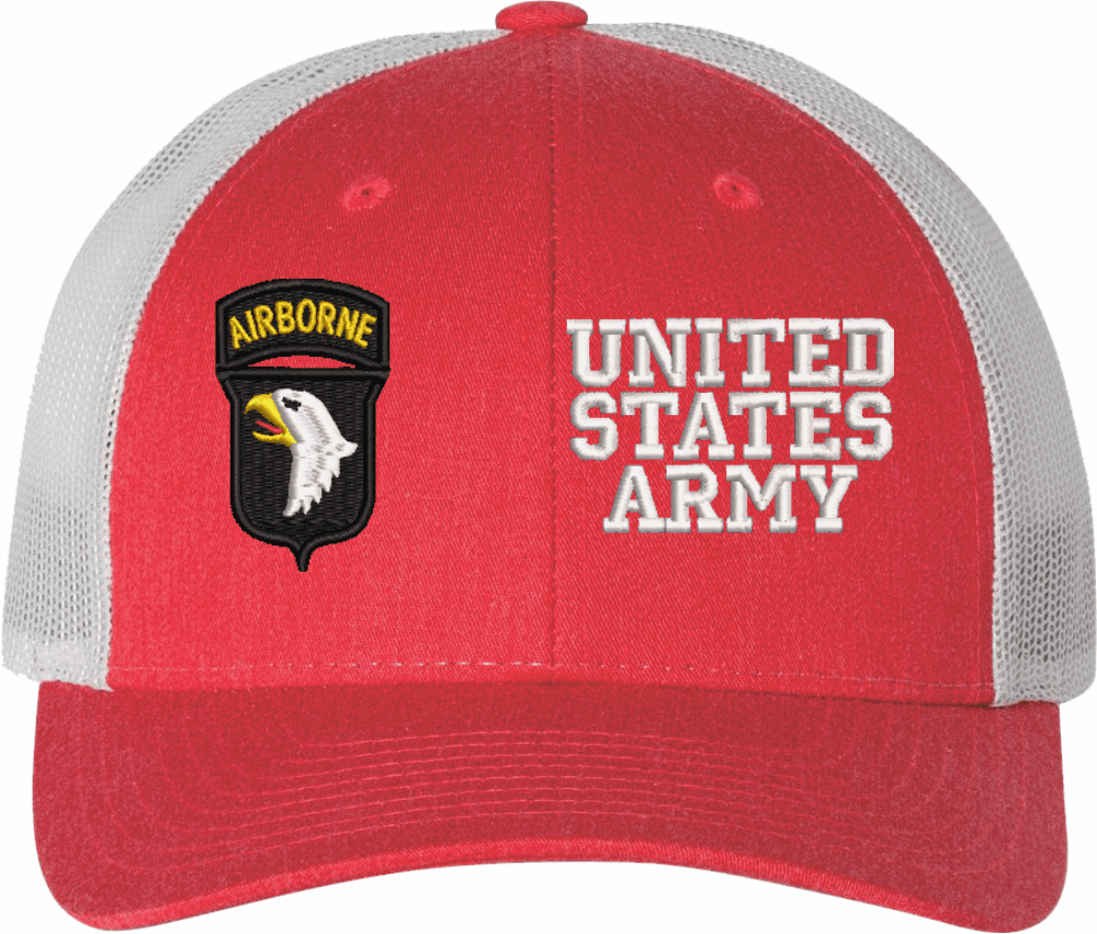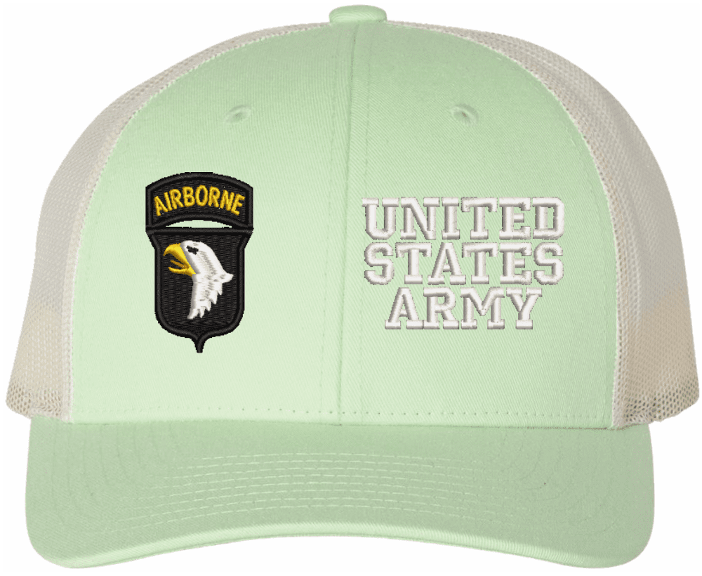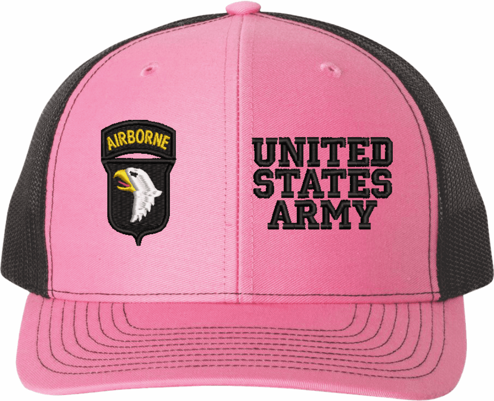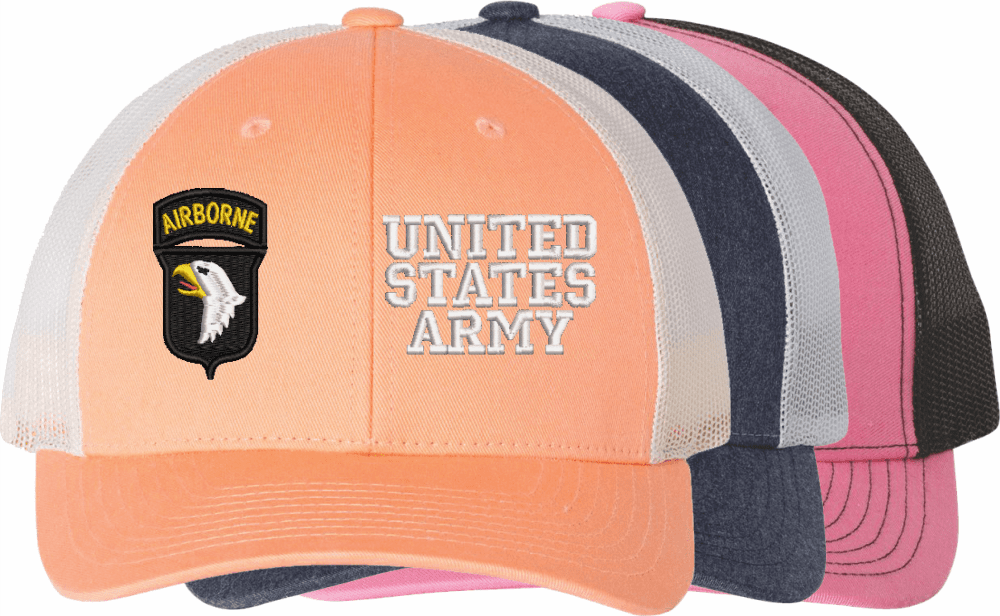 MilitaryBest is proud to offer this Mesh Back U.S. Army 101st Airborne Division United States Army Women's Split-Cap. The design is embroidered onto a 6x panel mid/low profile mesh back cap and is crisp, clean, and sure to be loved by all! As with all MilitaryBest caps and apparel your satisfaction is guaranteed!Caps ordered with embroidered back text requires an additional 1 to 2 days of production time. All personalized caps will be embroidered in ALL CAPITAL LETTERS. Caps personalized with back text are not returnable unless there is a material defect in the cap.