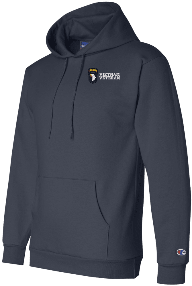 MilitaryBest is proud to offer this quality 101st Airborne Division Vietnam Veteran Hoodie. Each U.S. Army Hoodie is direct embroidered onto either a Champion or Gildan brand Hoodie using a 9.5 oz 50/50 Cotton Poly blend material. These Military Hoodies are proudly embroidered at our facilities in Scottsboro, AL.