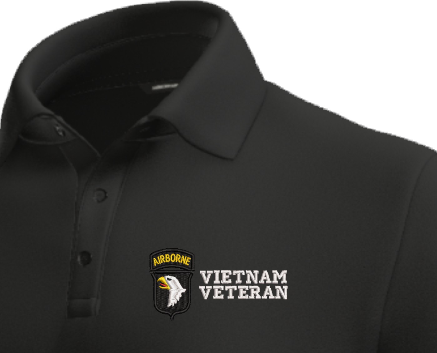 MilitaryBest is proud to offer this quality 101st Airborne Division Vietnam Veteran Polo. This Polo is made using 50/50 cotton/polyester moisture wicking material.These quality Military Polos are proudly embroidered at our facilities in Scottsboro, AL. Support the Army MWR program by purchasing only from Licensed Vendors.