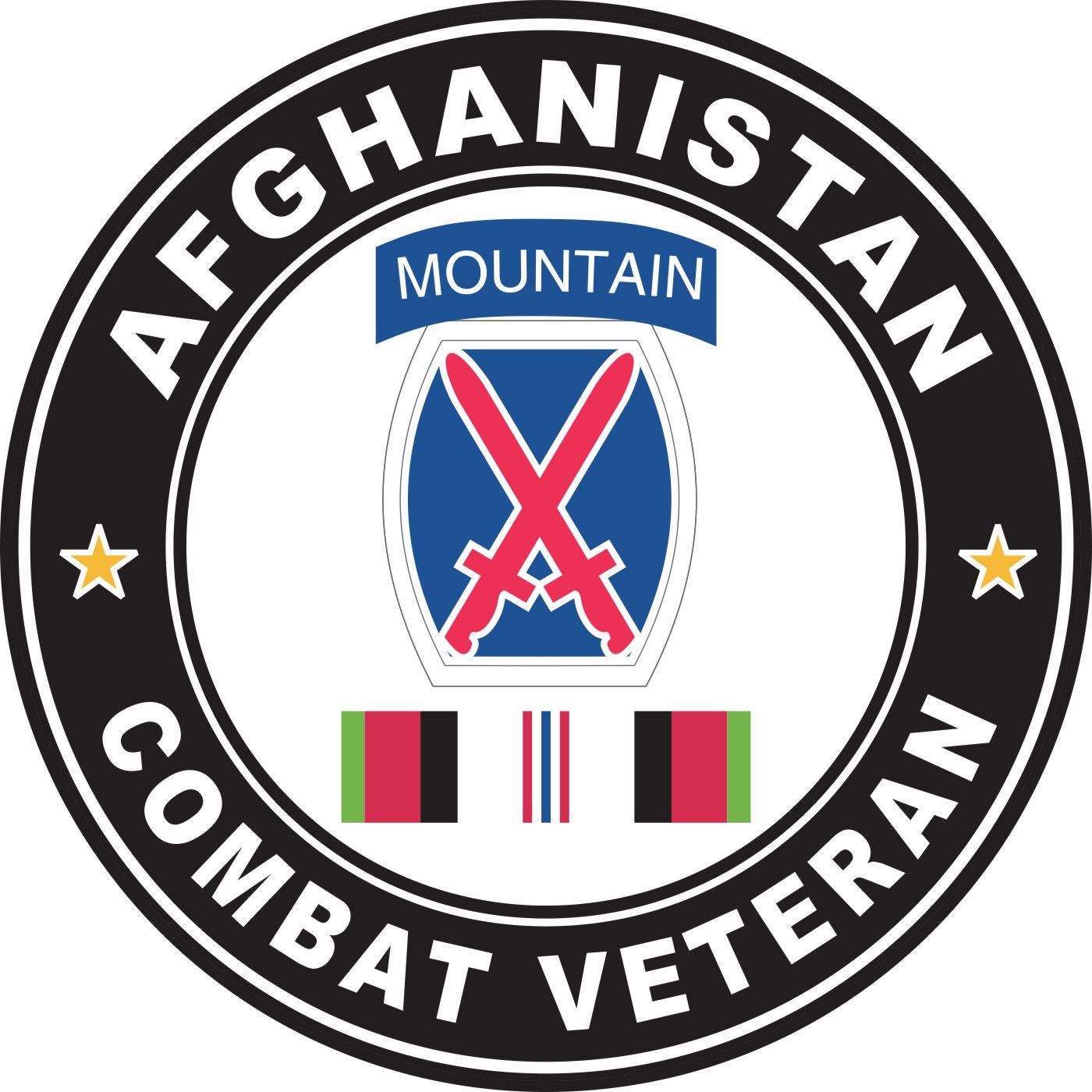 MilitaryBest is proud to offer this 10th Mountain Division Afghanistan Combat Veteran Decal Made in the USA at our facilities in Scottsboro, Alabama using the finest ink and vinyl available. We have been producing high quality Military Decals for over 15 years and we guarantee the quality of each one. A portion of the sale of this decal goes to support the MWR (Morale, Welfare, & Recreation) programs of the different branches of the U.S. Military. For bulk pricing for custom and wholesale decals click here: Custom & Wholesale Decals!*While many of our customers use our decals on a variety of surfaces. Their intended purpose is for windshield applications