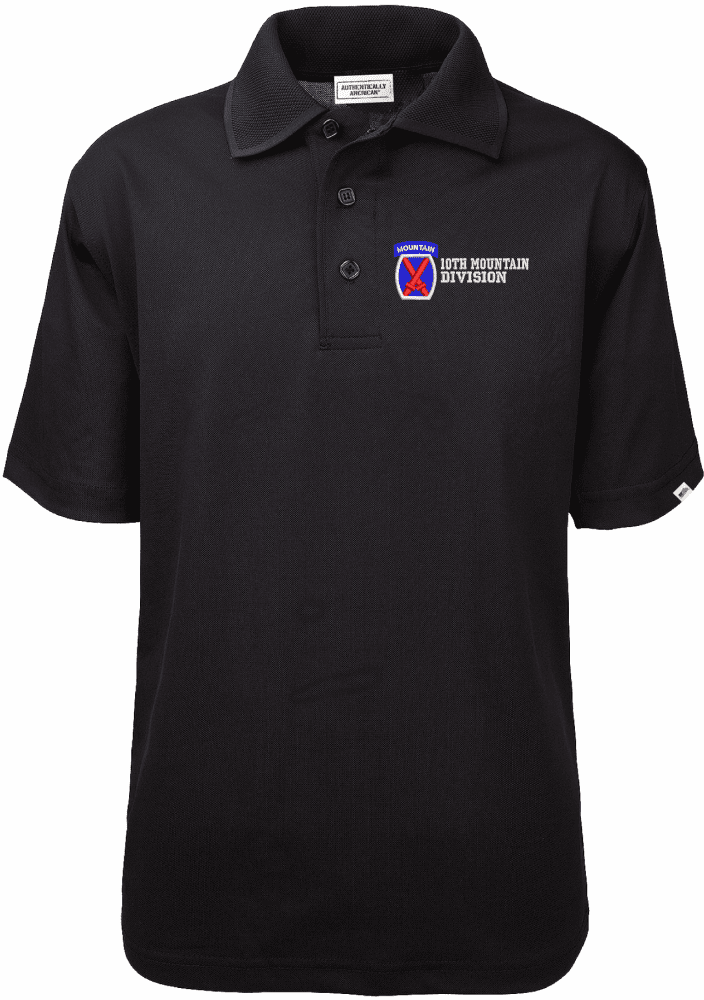 MilitaryBest proudly offers a top-quality 10th Mountain Division Authentically American Mens Moisture Wicking Polo made in the USA by Authentically American whom we have proudly partnered with.- Proudly Made and Embroidered in the USA.