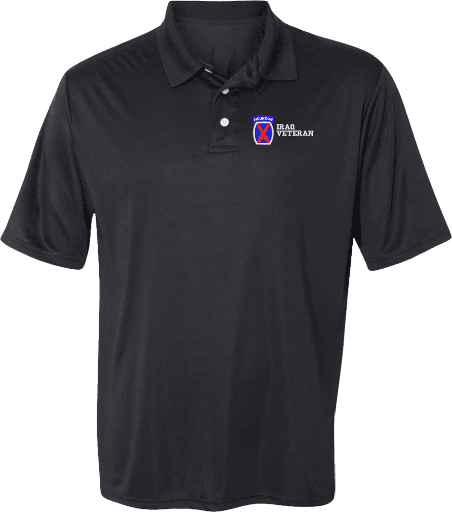 MilitaryBest is proud to offer this quality 10th Mountain Division Iraq Veteran Polo. This Polo is made using 50/50 cotton/polyester moisture wicking material.These quality Military Polos are proudly embroidered at our facilities in Scottsboro, AL. Support the Army MWR program by purchasing only from Licensed Vendors.