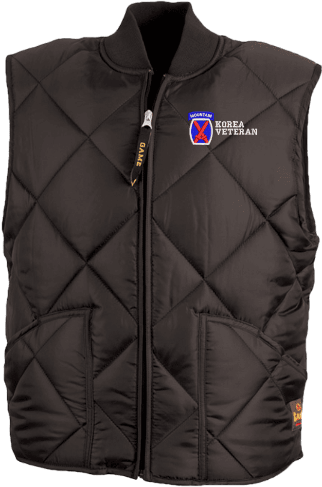 MilitaryBest is proud to offer this quality 10th Mountain Division Korea Veteran Game Sportswear Finest Vest. Our U.S. Army Vests feature, wind-resistant nylon taffeta shell, 5oz poly-fill lining with thermal knit backing, full front zipper, 2 outer pockets, and are machine washable. These Military Sportswear Vests are proudly embroidered at our facilities in Scottsboro, AL.
