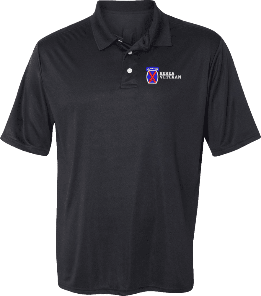 MilitaryBest is proud to offer this quality 10th Mountain Division Korea Veteran Polo. This Polo is made using 50/50 cotton/polyester moisture wicking material.These quality Military Polos are proudly embroidered at our facilities in Scottsboro, AL. Support the Army MWR program by purchasing only from Licensed Vendors.