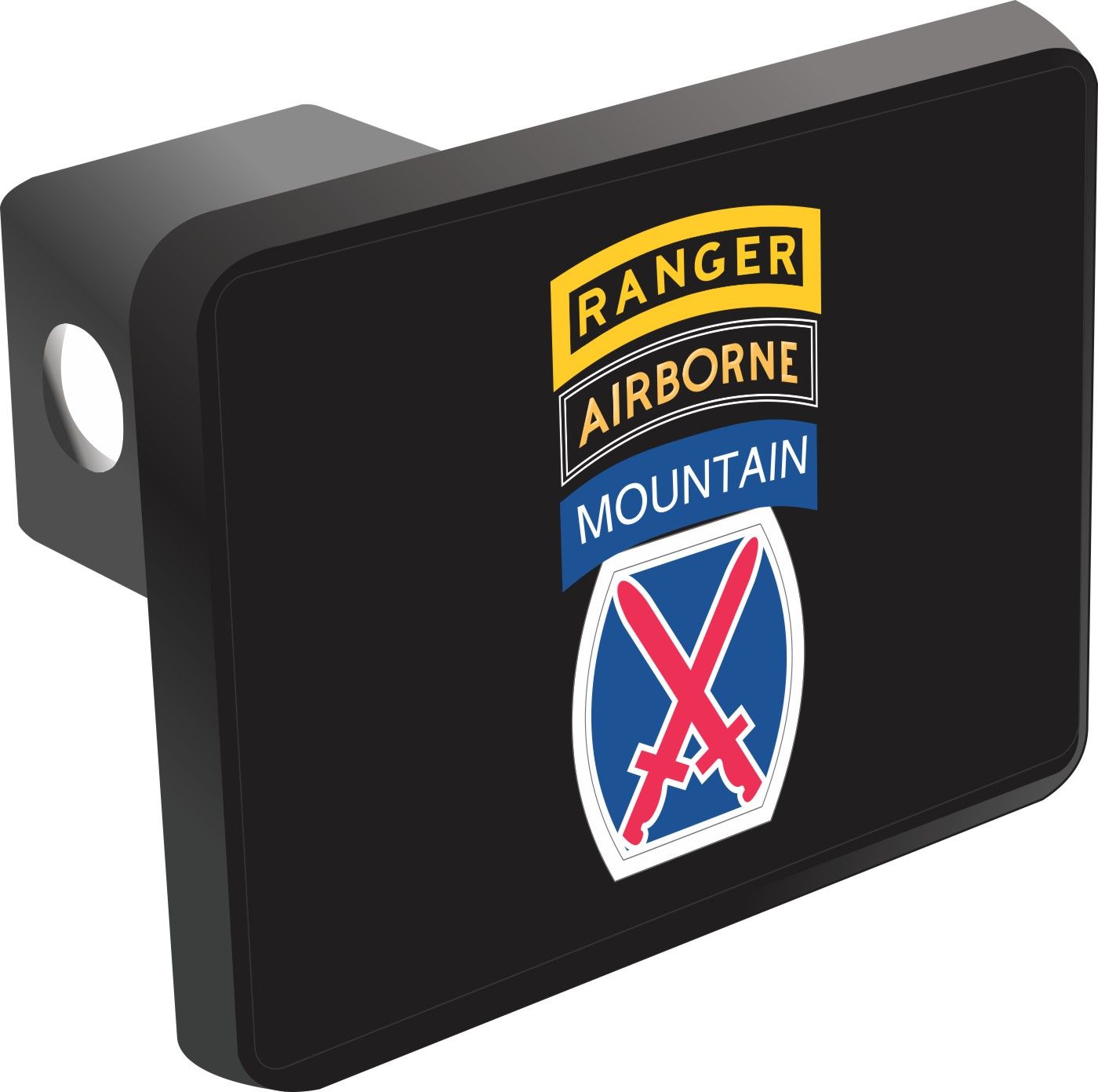 This 10th Mountain Division Ranger Airborne Hitch Cover is proudly Made in the USA. Each Hitch Cover's face plate measures 4.7" x 3.4" and is applied on a black heavy duty injection molded plastic 2" hitch cover; link pin not included. The face plate of the hitch cover is sublimation printed to provide a beautiful glossy finish sure to catch the eye. This hitch cover would make a wonderful addition to your truck or other vehicle.A percentage of the sale of each MilitaryBest item is forwarded to the licensing departments of each respective branch of service in support of the MWR (Morale, Welfare, & Recreation) program. These payments are made by either ALL4U LLC or the wholesaler from where the item originated. Our team thanks you for your service and your support of these programs.