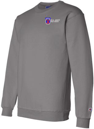 MilitaryBest is proud to offer this quality 10th Mountain Division Retired Sweatshirt. Each U.S. Army sweatshirt is direct embroidered onto either a Champion or Jerzees brand sweatshirt using a 9.5 oz 50/50 Cotton Poly blend material. These Military Sweatshirts are proudly embroidered at our facilities in Scottsboro, AL.
