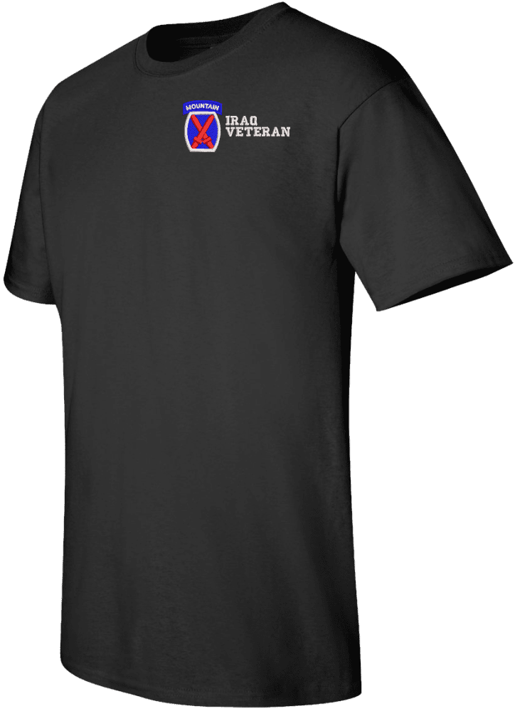 Note: Some of the Color Options pictured may not be available. Available Color Options are listed on the drop down menu above.MilitaryBest is proud to offer this quality 10th Mountain Division Iraq Veteran T Shirt. This Gildan brand short sleeve t-shirt is made using a 6 oz pre-shrunk 100% cotton material. These quality Military T Shirts are proudly embroidered at our facilities in Scottsboro, AL. Support the Army MWR program by purchasing only from Licensed Vendors.