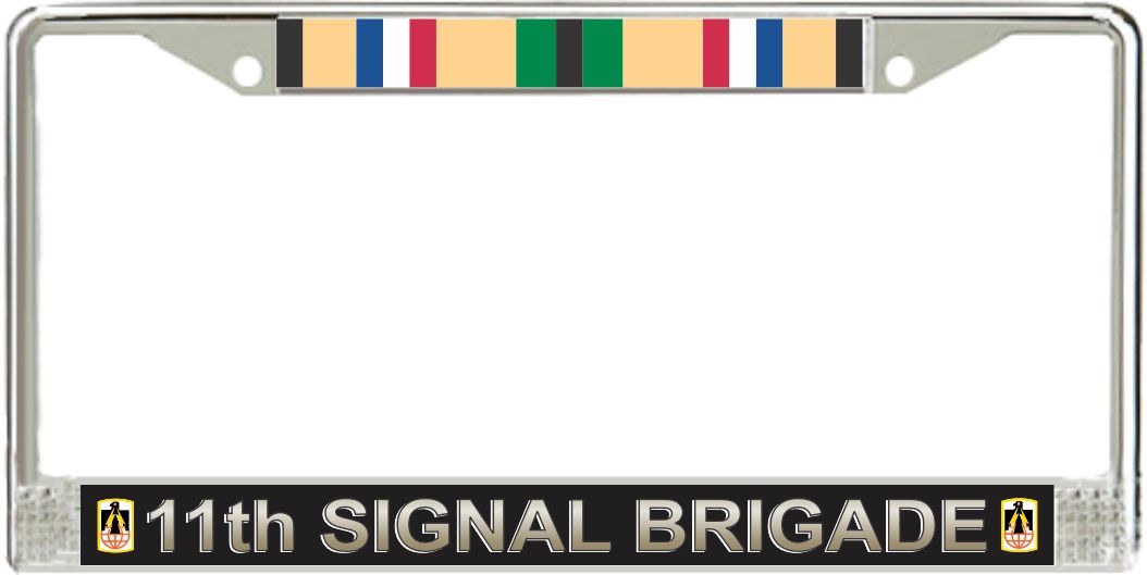 11th Signal Brigade Gulf War License Plate FrameThis 11th Signal Brigade Gulf War License Plate Frame is made from the highest quality finished metal alloy. Each one is designed to provide years of use. Each is designed and produced in our facility in Scottsboro, Alabama.