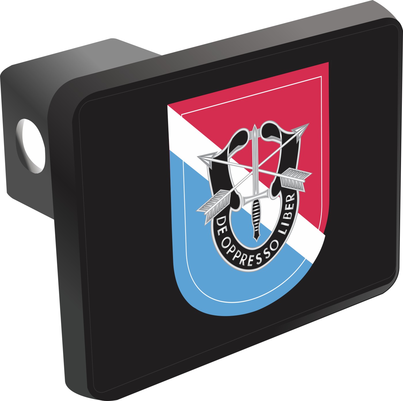 This 11th Special Forces Group Flash Hitch Cover is proudly Made in the USA. Each Hitch Cover's face plate measures 4.7" x 3.4" and is applied on a black heavy duty injection molded plastic 2" hitch cover; link pin not included. The face plate of the hitch cover is sublimation printed to provide a beautiful glossy finish sure to catch the eye. This hitch cover would make a wonderful addition to your truck or other vehicle.A percentage of the sale of each MilitaryBest item is forwarded to the licensing departments of each respective branch of service in support of the MWR (Morale, Welfare, & Recreation) program. These payments are made by either ALL4U LLC or the wholesaler from where the item originated. Our team thanks you for your service and your support of these programs.