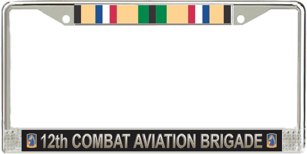 12th Aviation Brigade Gulf War Veteran License Plate FrameThis U.S. Army 12th Aviation Brigade Gulf War Veteran License Plate Frame is made from the highest quality finished metal alloy. Each one is designed to provide years of use. Each is designed and produced in our facility in Scottsboro, Alabama.