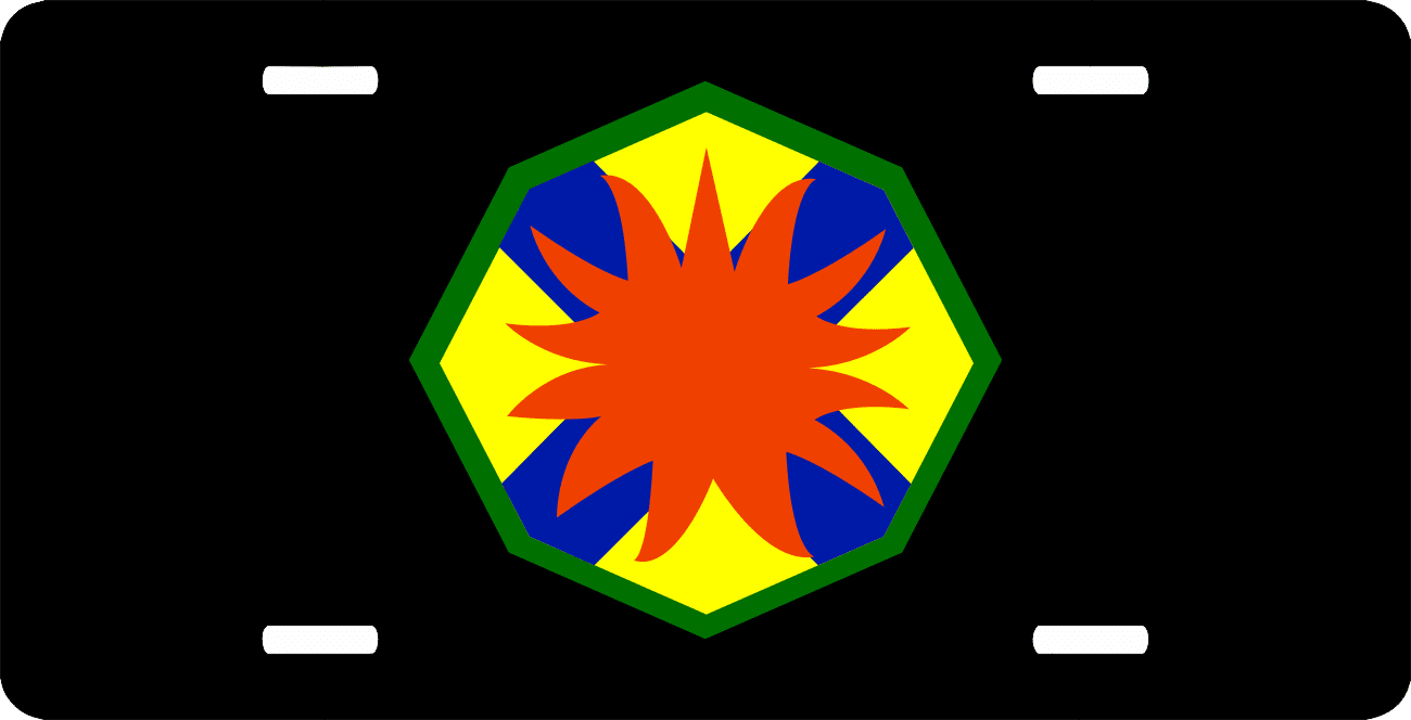 This U.S. Army 13th Support Command License Plate is made from heavy gauge aluminum and has a baked enamel finish to last for many years of use. Each plate measures 5 15/16" x 11 15/16". This license plate would make a wonderful addition to your collection or a great gift.