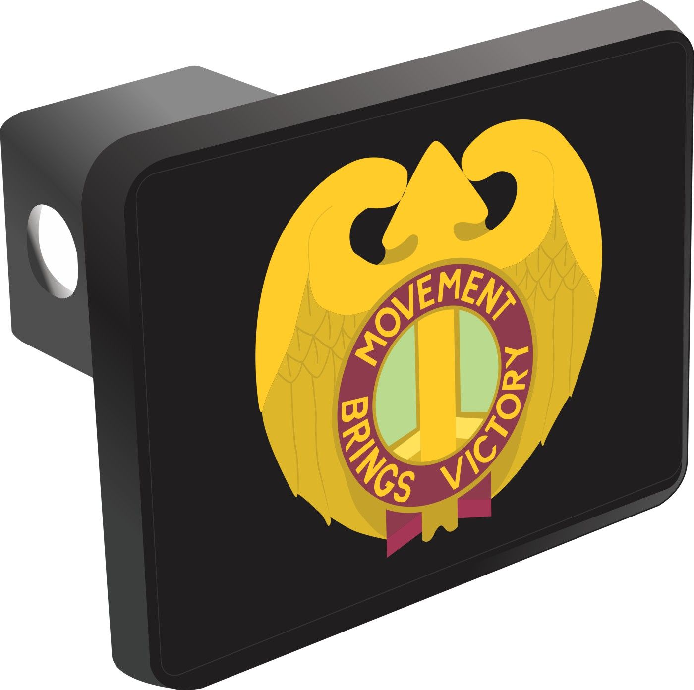 This 143rd Transportation Command Unit Crest Hitch Cover is proudly Made in the USA. Each Hitch Cover's face plate measures 4.7" x 3.4" and is applied on a black heavy duty injection molded plastic 2" hitch cover; link pin not included. The face plate of the hitch cover is sublimation printed to provide a beautiful glossy finish sure to catch the eye. This hitch cover would make a wonderful addition to your truck or other vehicle.A percentage of the sale of each MilitaryBest item is forwarded to the licensing departments of each respective branch of service in support of the MWR (Morale, Welfare, & Recreation) program. These payments are made by either ALL4U LLC or the wholesaler from where the item originated. Our team thanks you for your service and your support of these programs.