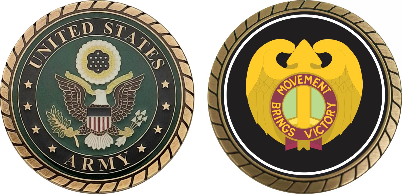 This 1 3/4” 143rd Transportation Command Unit Crest Challenge Coin is proudly offered by Militarybest. This Officially Licensed Army coin has beautiful enamel finish on one side and an organized crisp clean design on the opposite side.