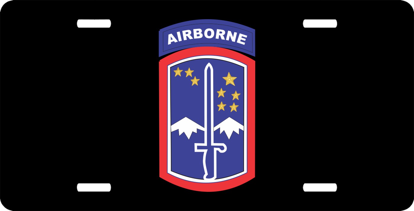 This 172nd Infantry Brigade Airborne License Plate is made from heavy gauge aluminum and has a baked enamel finish to last for many years of use. Each plate measures 5 15/16" x 11 15/16". This license plate would make a wonderful addition to your collection or a great gift.
