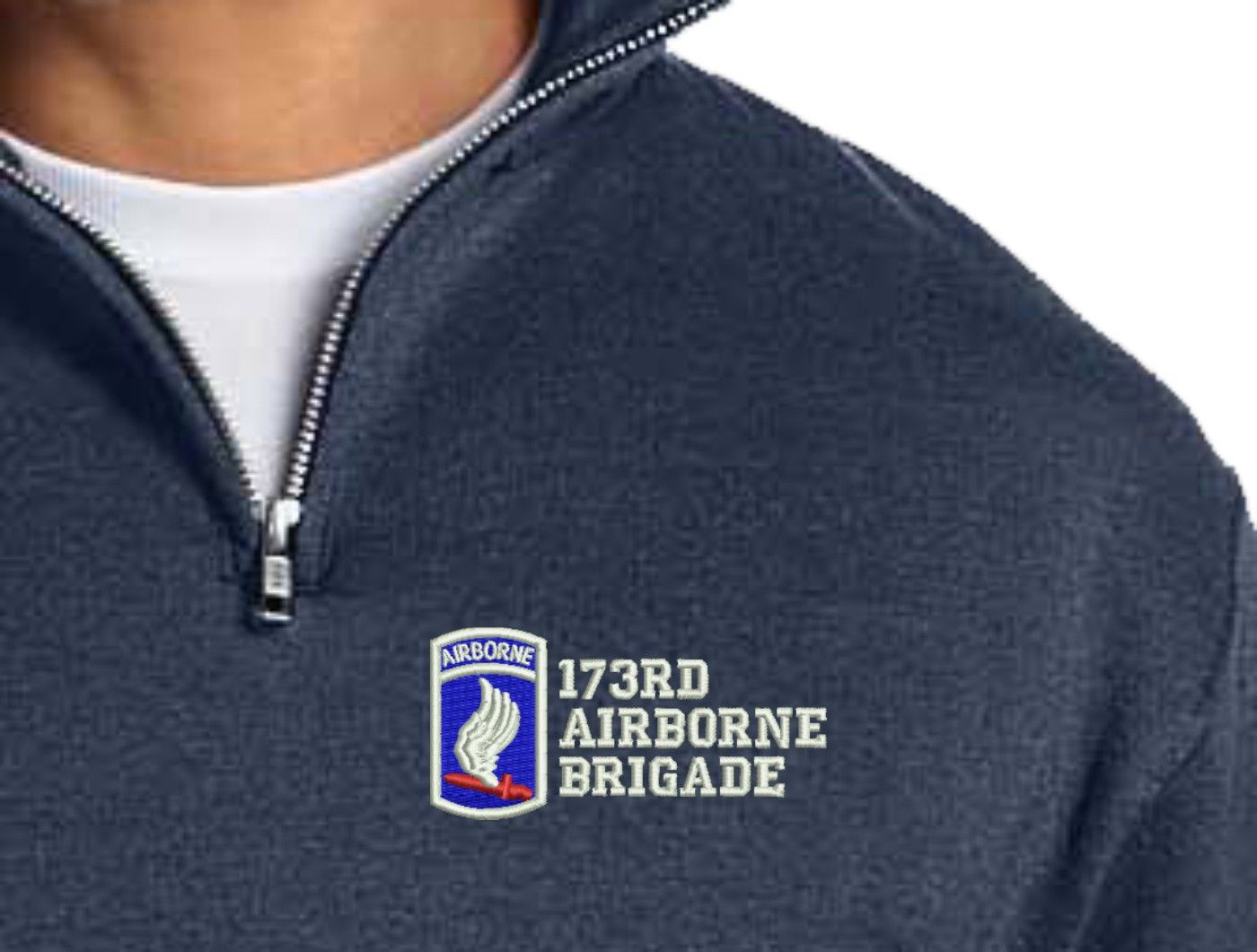 MilitaryBest is proud to offer this 173rd Airborne Brigade Embroidered Quarter-Zip Pullover. This quality shirt is embroidered by our MilitaryBest team in Northeast Alabama.PRODUCT FEATURES