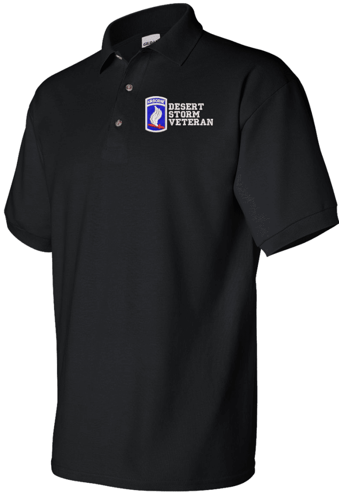 Note: Some of the Color Options pictured may not be available. Available Color Options are listed on the drop down menu above.MilitaryBest is proud to offer this quality 173rd Airborne Brigade Desert Storm Veteran Polo. Each Polo is available in either 100% Ringspun cotton pique or a 50/50 cotton/polyester blend. These quality Military Polos are proudly embroidered at our facilities in Scottsboro, AL. Support the Army MWR program by purchasing only from Licensed Vendors.