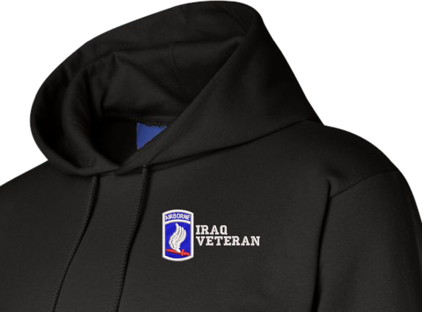 MilitaryBest is proud to offer this quality 173rd Airborne Brigade Iraq Veteran Hoodie. Each U.S. Army Hoodie is direct embroidered onto either a Champion or Gildan brand Hoodie using a 9.5 oz 50/50 Cotton Poly blend material. These Military Hoodies are proudly embroidered at our facilities in Scottsboro, AL.