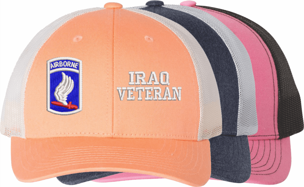 MilitaryBest is proud to offer this Mesh Back U.S. Army 173rd Airborne Brigade Iraq Veteran Women's Split-Cap. The design is embroidered onto a 6x panel mid/low profile mesh back cap and is crisp, clean, and sure to be loved by all! As with all MilitaryBest caps and apparel your satisfaction is guaranteed!Caps ordered with embroidered back text requires an additional 1 to 2 days of production time. All personalized caps will be embroidered in ALL CAPITAL LETTERS. Caps personalized with back text are not returnable unless there is a material defect in the cap.
