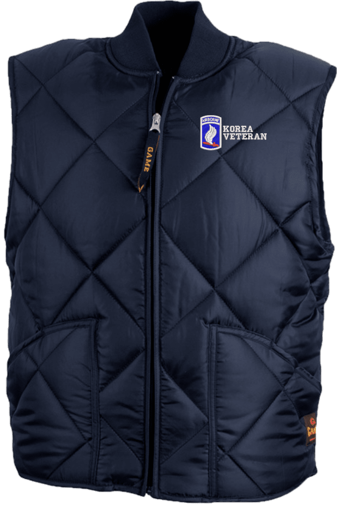 MilitaryBest is proud to offer this quality 173rd Airborne Brigade Korea Veteran Game Sportswear Finest Vest. Our U.S. Army Vests feature, wind-resistant nylon taffeta shell, 5oz poly-fill lining with thermal knit backing, full front zipper, 2 outer pockets, and are machine washable. These Military Sportswear Vests are proudly embroidered at our facilities in Scottsboro, AL.