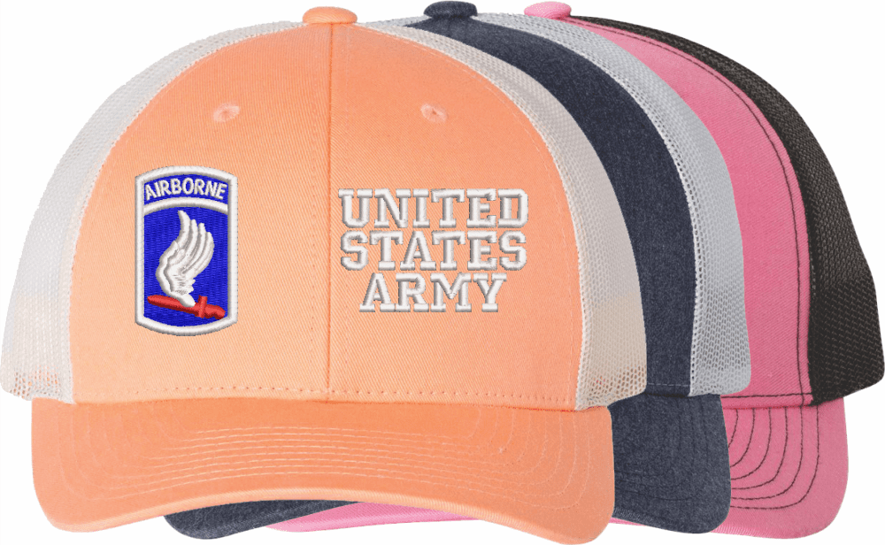 MilitaryBest is proud to offer this Mesh Back U.S. Army 173rd Airborne Brigade United States Army Women's Split-Cap. The design is embroidered onto a 6x panel mid/low profile mesh back cap and is crisp, clean, and sure to be loved by all! As with all MilitaryBest caps and apparel your satisfaction is guaranteed!Caps ordered with embroidered back text requires an additional 1 to 2 days of production time. All personalized caps will be embroidered in ALL CAPITAL LETTERS. Caps personalized with back text are not returnable unless there is a material defect in the cap.