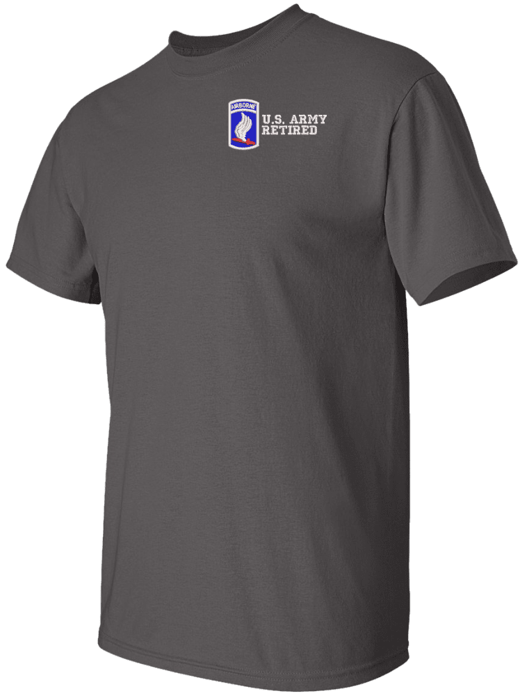 Note: Some of the Color Options pictured may not be available. Available Color Options are listed on the drop down menu above.MilitaryBest is proud to offer this quality 173rd Airborne Brigade Retired T Shirt. This Gildan brand short sleeve t-shirt is made using a 6 oz pre-shrunk 100% cotton material. These quality Military T Shirts are proudly embroidered at our facilities in Scottsboro, AL. Support the Army MWR program by purchasing only from Licensed Vendors.
