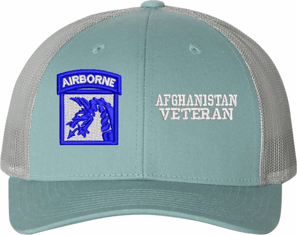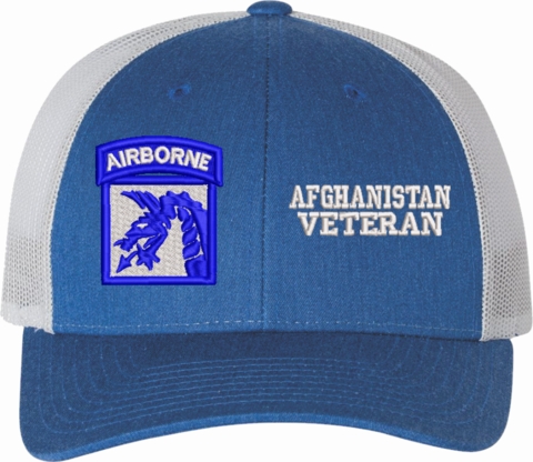 MilitaryBest is proud to offer this Mesh Back U.S. Army 18th Airborne Corps Afghanistan Veteran Women's Split-Cap. The design is embroidered onto a 6x panel mid/low profile mesh back cap and is crisp, clean, and sure to be loved by all! As with all MilitaryBest caps and apparel your satisfaction is guaranteed!Caps ordered with embroidered back text requires an additional 1 to 2 days of production time. All personalized caps will be embroidered in ALL CAPITAL LETTERS. Caps personalized with back text are not returnable unless there is a material defect in the cap.