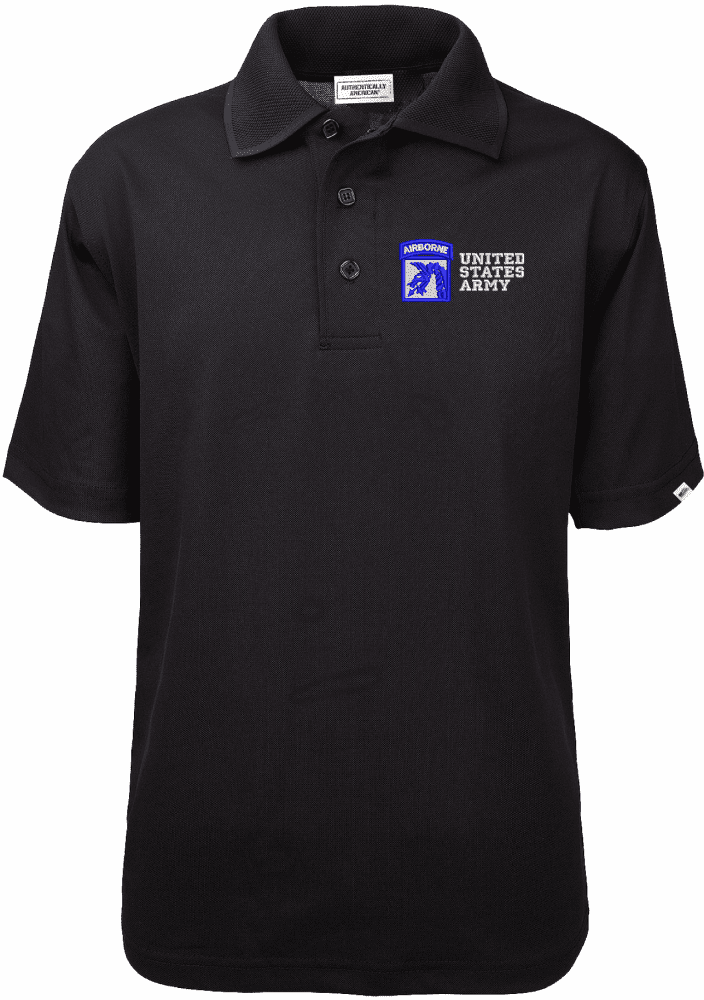 MilitaryBest proudly offers a top-quality 18th Airborne Corps United States Army Authentically American Mens Moisture Wicking Polo made in the USA by Authentically American whom we have proudly partnered with.- Proudly Made and Embroidered in the USA.