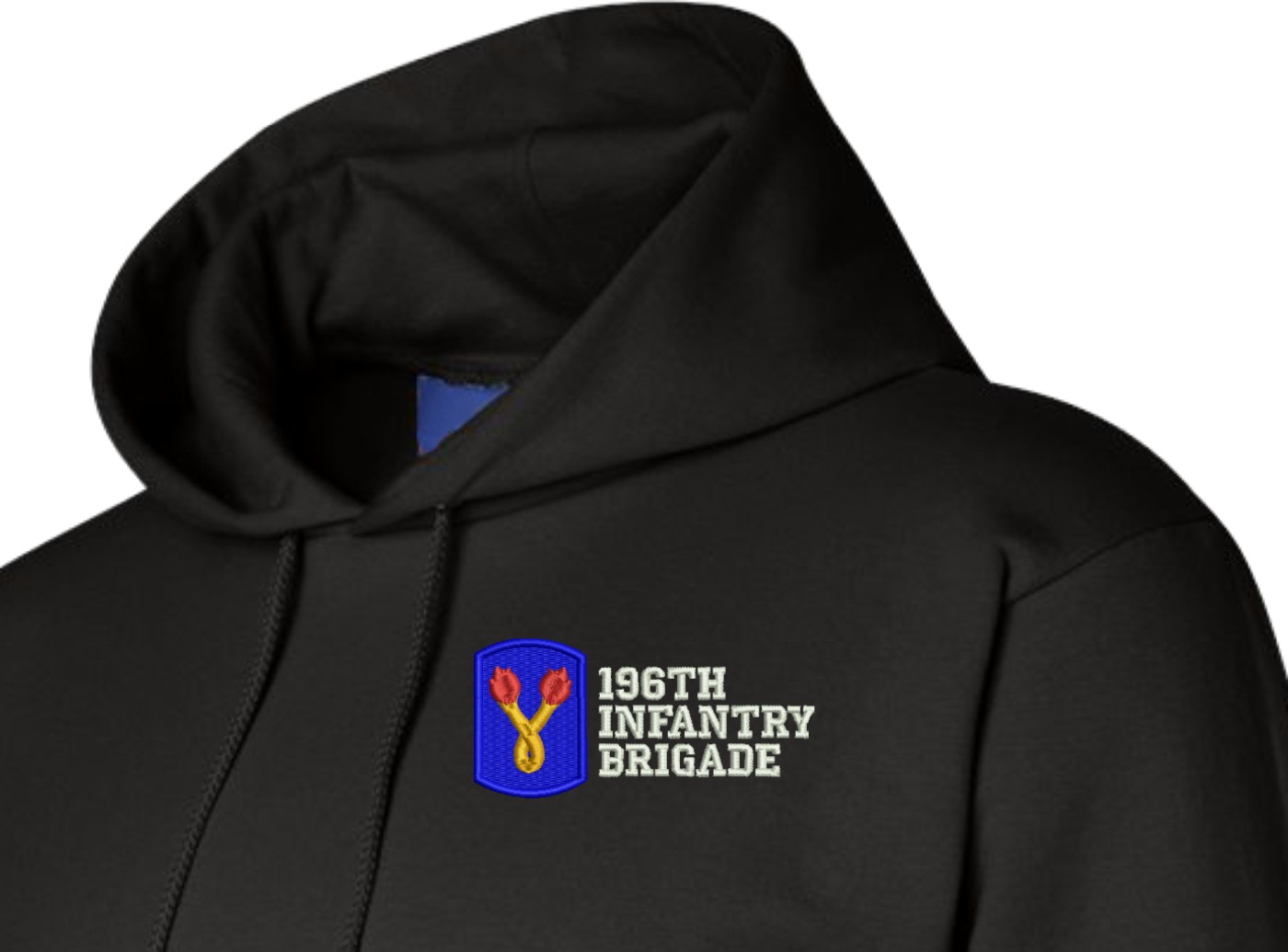 MilitaryBest is proud to offer this quality 196th Infantry Brigade Hoodie. Each U.S. Army Hoodie is direct embroidered onto either a Champion or Gildan brand Hoodie using a 9.5 oz 50/50 Cotton Poly blend material. These Military Hoodies are proudly embroidered at our facilities in Scottsboro, AL.