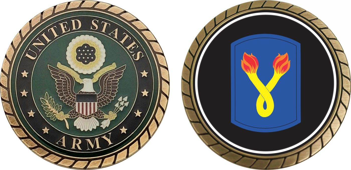 This 1 3/4” 196th Infantry Brigade Patch Challenge Coin is proudly offered by Militarybest. This Officially Licensed Army coin has beautiful enamel finish on one side and an organized crisp clean design on the opposite side.