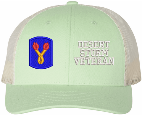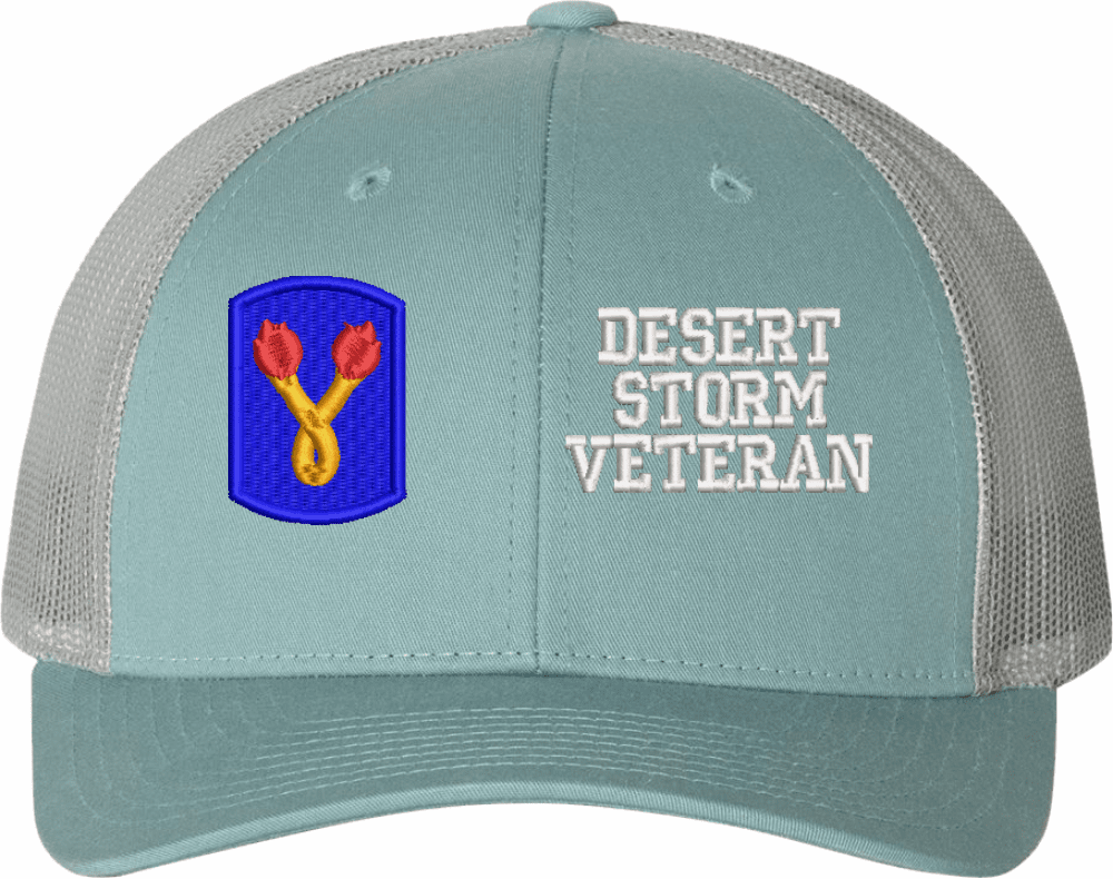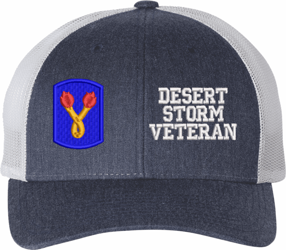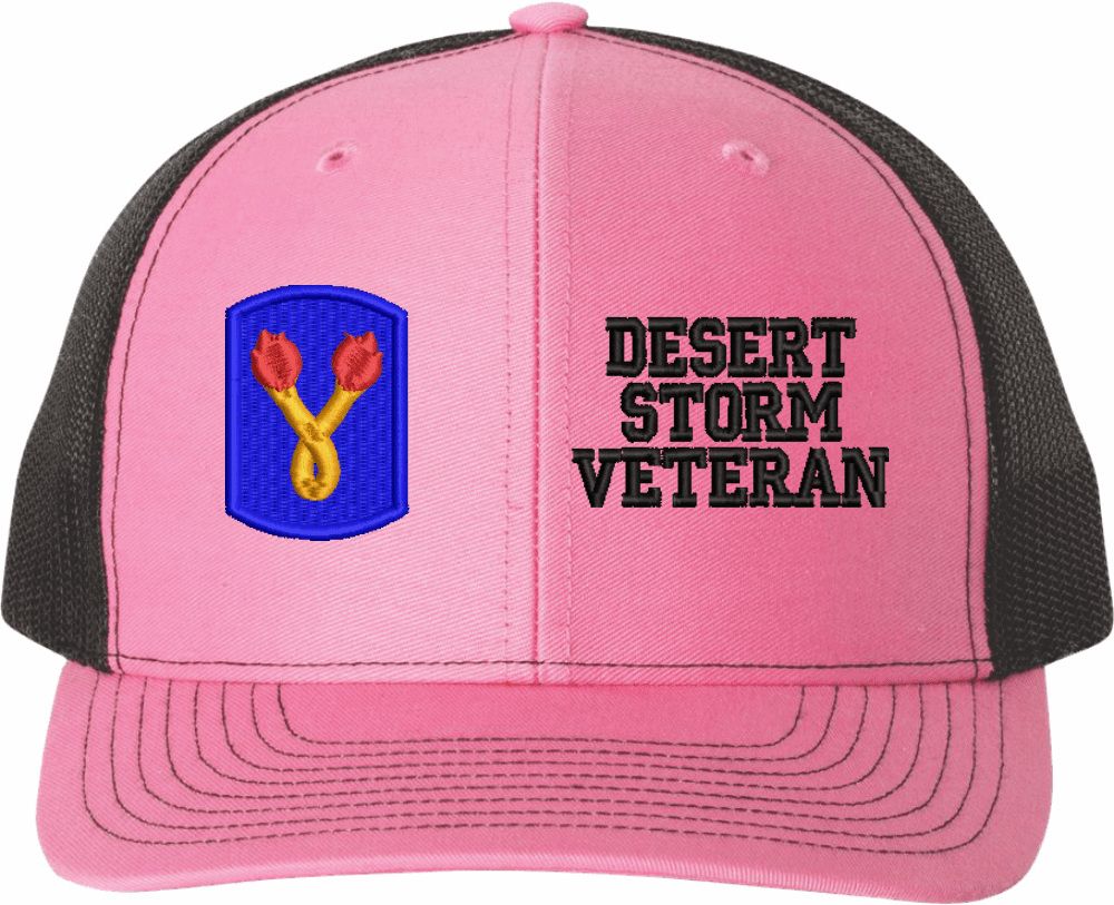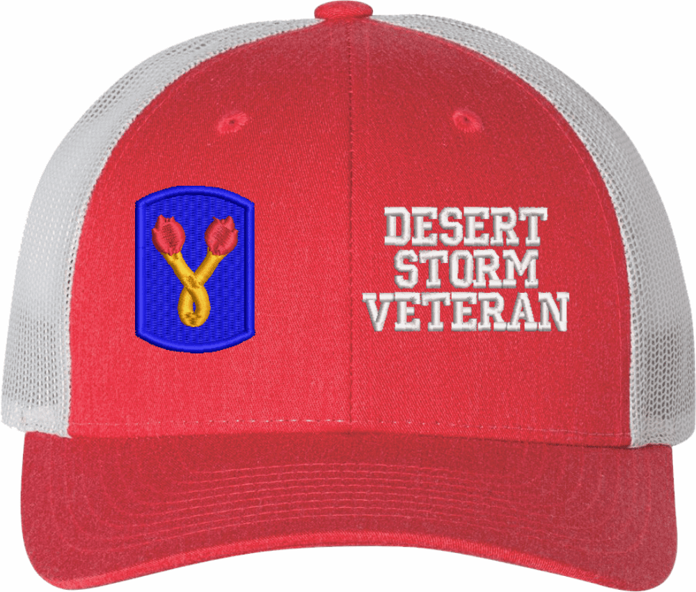 MilitaryBest is proud to offer this Mesh Back U.S. Army 196th Infantry Brigade Desert Storm Veteran Women's Split-Cap. The design is embroidered onto a 6x panel mid/low profile mesh back cap and is crisp, clean, and sure to be loved by all! As with all MilitaryBest caps and apparel your satisfaction is guaranteed!Caps ordered with embroidered back text requires an additional 1 to 2 days of production time. All personalized caps will be embroidered in ALL CAPITAL LETTERS. Caps personalized with back text are not returnable unless there is a material defect in the cap.