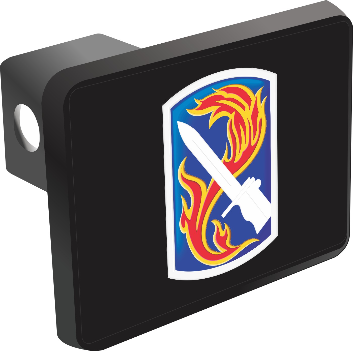 This 198th Infantry Brigade Patch Hitch Cover is proudly Made in the USA. Each Hitch Cover's face plate measures 4.7" x 3.4" and is applied on a black heavy duty injection molded plastic 2" hitch cover; link pin not included. The face plate of the hitch cover is sublimation printed to provide a beautiful glossy finish sure to catch the eye. This hitch cover would make a wonderful addition to your truck or other vehicle.A percentage of the sale of each MilitaryBest item is forwarded to the licensing departments of each respective branch of service in support of the MWR (Morale, Welfare, & Recreation) program. These payments are made by either ALL4U LLC or the wholesaler from where the item originated. Our team thanks you for your service and your support of these programs.