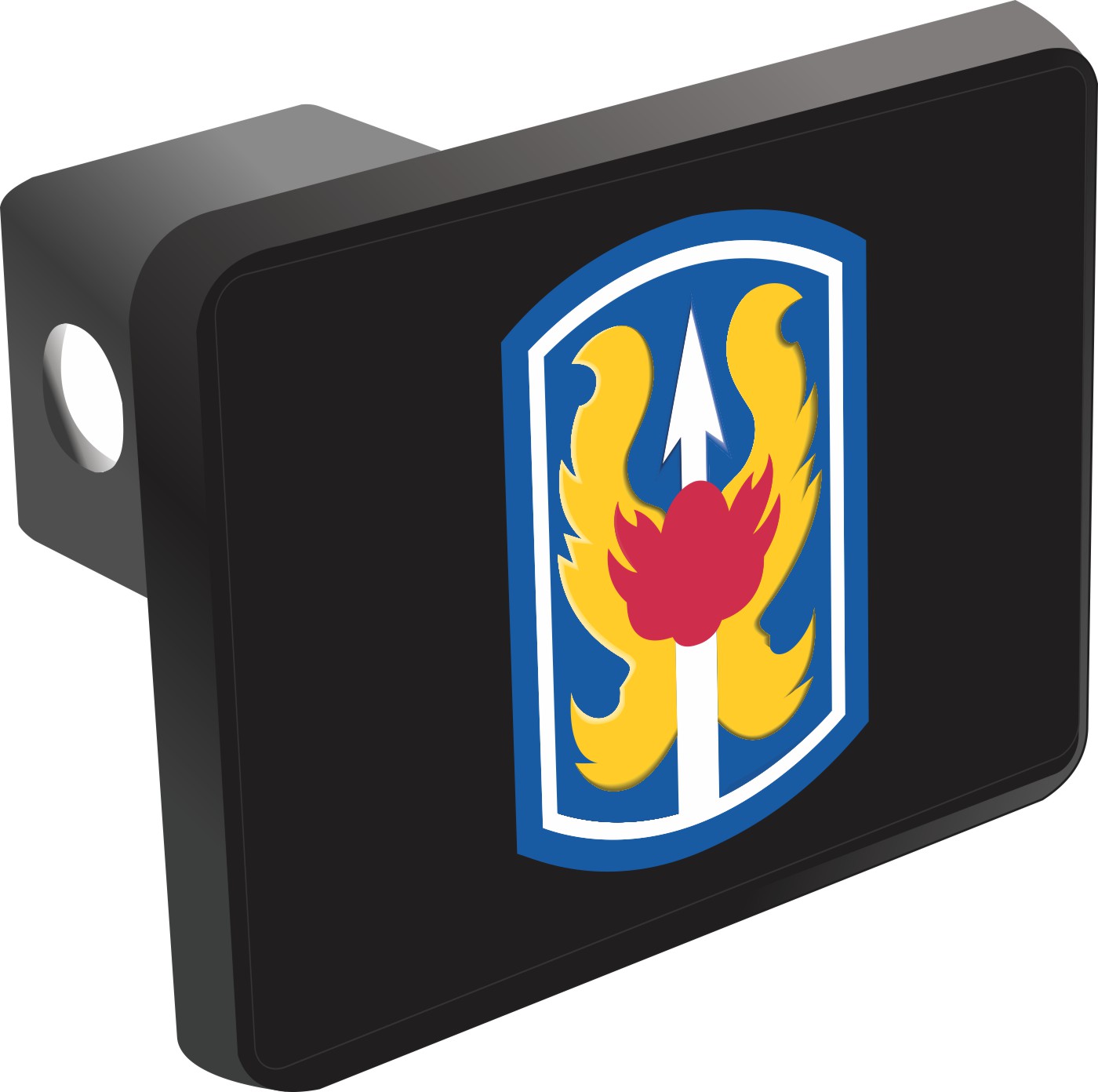 This 199th Infantry Brigade Patch Hitch Cover is proudly Made in the USA. Each Hitch Cover's face plate measures 4.7" x 3.4" and is applied on a black heavy duty injection molded plastic 2" hitch cover; link pin not included. The face plate of the hitch cover is sublimation printed to provide a beautiful glossy finish sure to catch the eye. This hitch cover would make a wonderful addition to your truck or other vehicle.A percentage of the sale of each MilitaryBest item is forwarded to the licensing departments of each respective branch of service in support of the MWR (Morale, Welfare, & Recreation) program. These payments are made by either ALL4U LLC or the wholesaler from where the item originated. Our team thanks you for your service and your support of these programs.