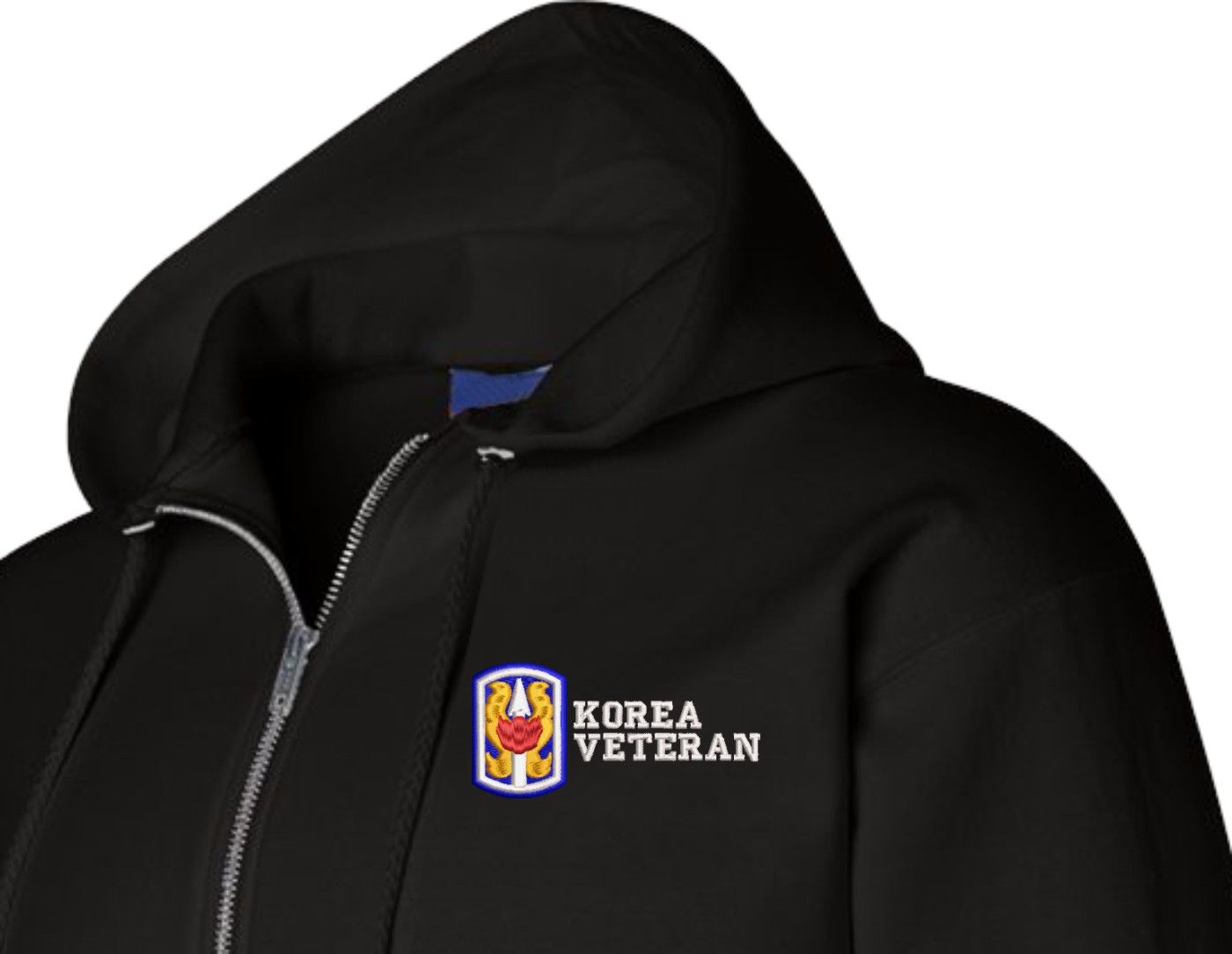MilitaryBest is proud to offer this quality 199th Infantry Brigade Korea Veteran Zippered Hoodie. Each U.S. Army Zippered Hoodie is direct embroidered onto either a Champion or Gildan brand Zippered Hoodie using a 9.5 oz 50/50 Cotton Poly blend material. These Military Zippered Hoodies are proudly embroidered at our facilities in Scottsboro, AL.