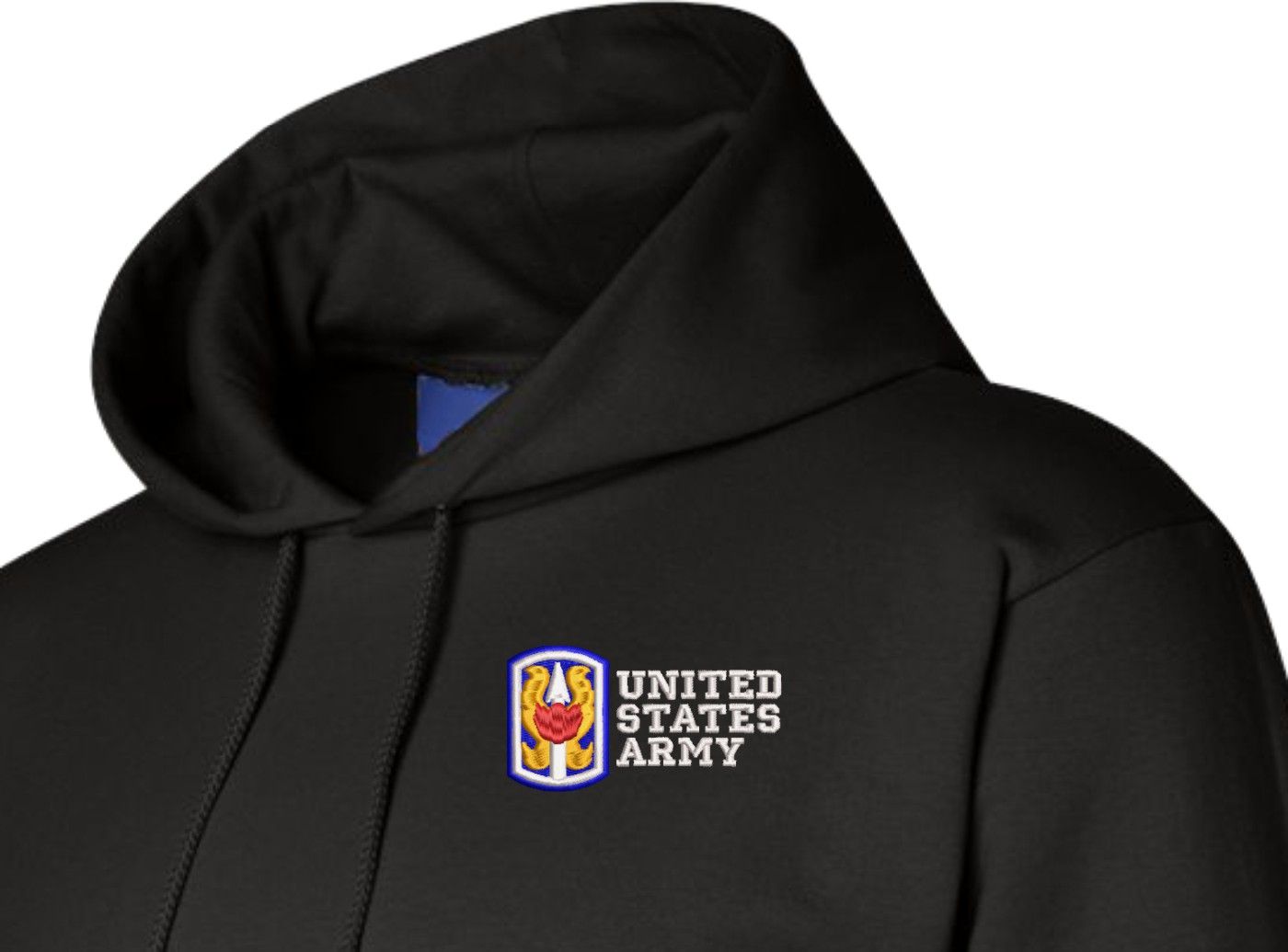 MilitaryBest is proud to offer this quality 199th Infantry Brigade United States Army Hoodie. Each U.S. Army Hoodie is direct embroidered onto either a Champion or Gildan brand Hoodie using a 9.5 oz 50/50 Cotton Poly blend material. These Military Hoodies are proudly embroidered at our facilities in Scottsboro, AL.