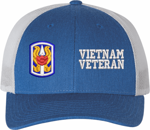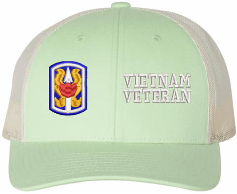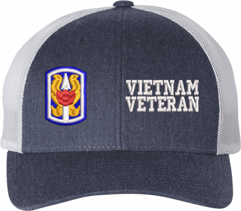 MilitaryBest is proud to offer this Mesh Back U.S. Army 199th Infantry Brigade Vietnam Veteran Women's Split-Cap. The design is embroidered onto a 6x panel mid/low profile mesh back cap and is crisp, clean, and sure to be loved by all! As with all MilitaryBest caps and apparel your satisfaction is guaranteed!Caps ordered with embroidered back text requires an additional 1 to 2 days of production time. All personalized caps will be embroidered in ALL CAPITAL LETTERS. Caps personalized with back text are not returnable unless there is a material defect in the cap.