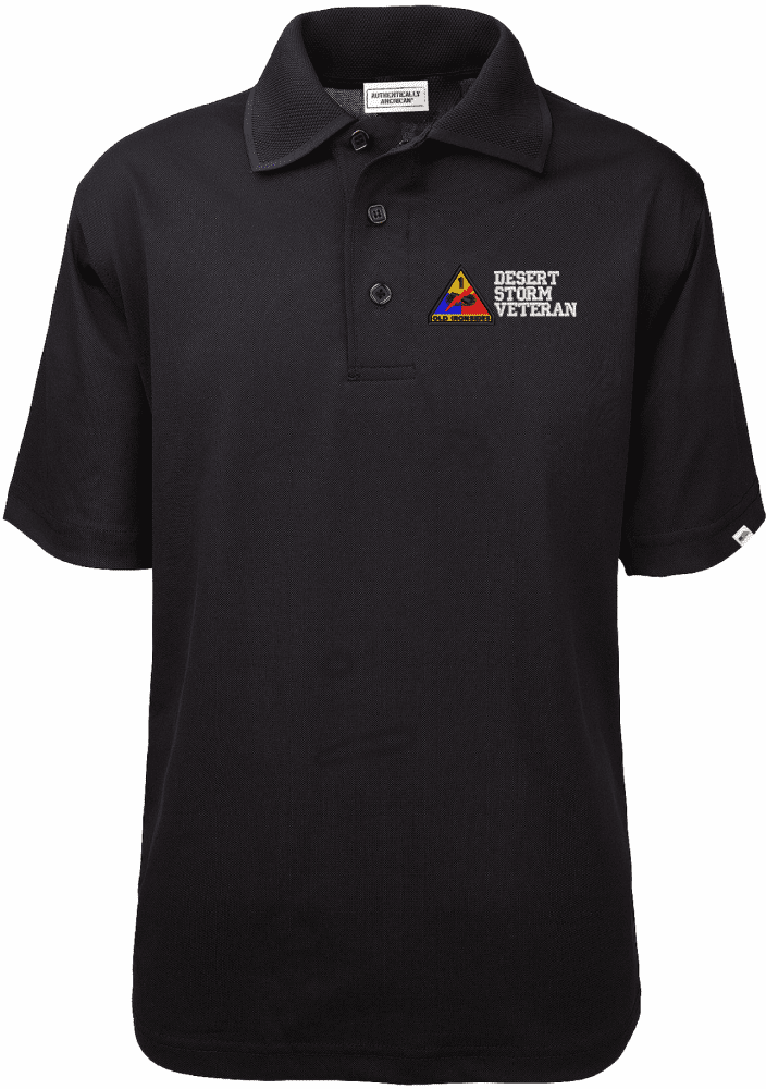 MilitaryBest proudly offers a top-quality 1st Armored Division Desert Storm Veteran Authentically American Mens Moisture Wicking Polo made in the USA by Authentically American whom we have proudly partnered with.- Proudly Made and Embroidered in the USA.
