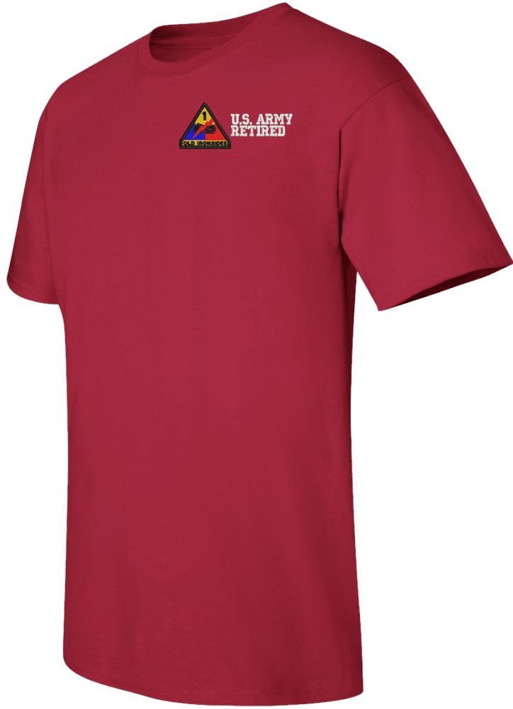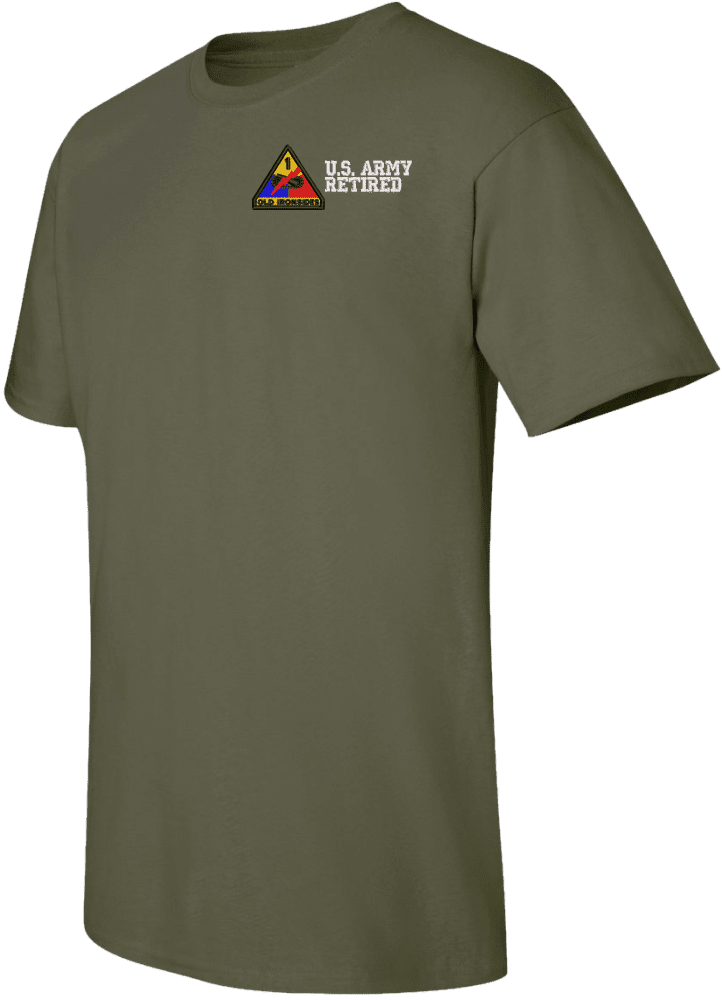 Note: Some of the Color Options pictured may not be available. Available Color Options are listed on the drop down menu above.MilitaryBest is proud to offer this quality 1st Armored Division Retired T Shirt. This Gildan brand short sleeve t-shirt is made using a 6 oz pre-shrunk 100% cotton material. These quality Military T Shirts are proudly embroidered at our facilities in Scottsboro, AL. Support the Army MWR program by purchasing only from Licensed Vendors.