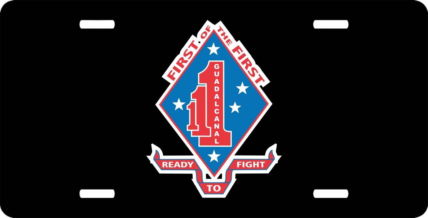 This 1st Battalion 1st Marines Division "First of the First" License Plate is made from heavy gauge aluminum and has a baked enamel finish to last for many years of use. Each plate measures 5 15/16" x 11 15/16". This license plate would make a wonderful addition to your collection or a great gift.