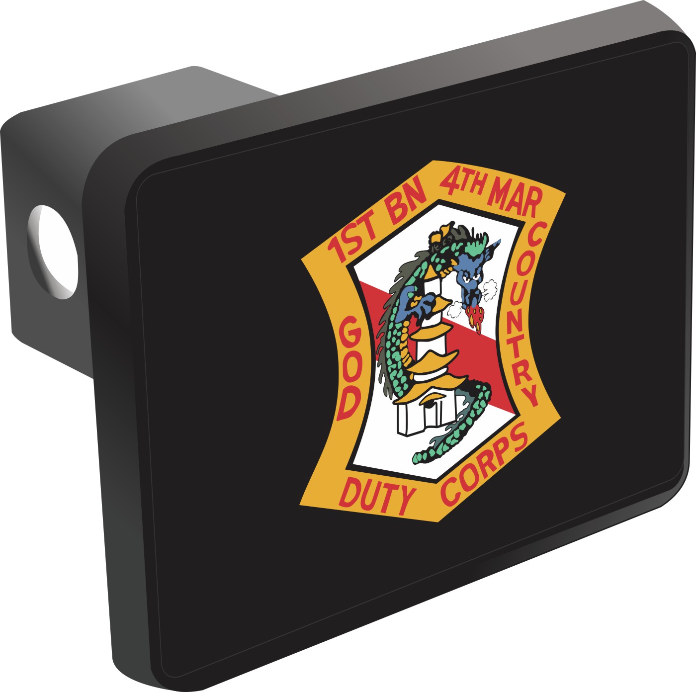 This 1st Battalion 4th Marines Hitch Cover is proudly Made in the USA. Each Hitch Cover's face plate measures 4.7" x 3.4" and is applied on a black heavy duty injection molded plastic 2" hitch cover; link pin not included. The face plate of the hitch cover is sublimation printed to provide a beautiful glossy finish sure to catch the eye. This hitch cover would make a wonderful addition to your truck or other vehicle.A percentage of the sale of each MilitaryBest item is forwarded to the licensing departments of each respective branch of service in support of the MWR (Morale, Welfare, & Recreation) program. These payments are made by either ALL4U LLC or the wholesaler from where the item originated. Our team thanks you for your service and your support of these programs.