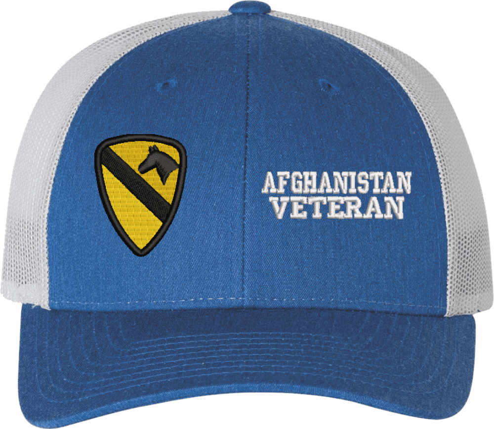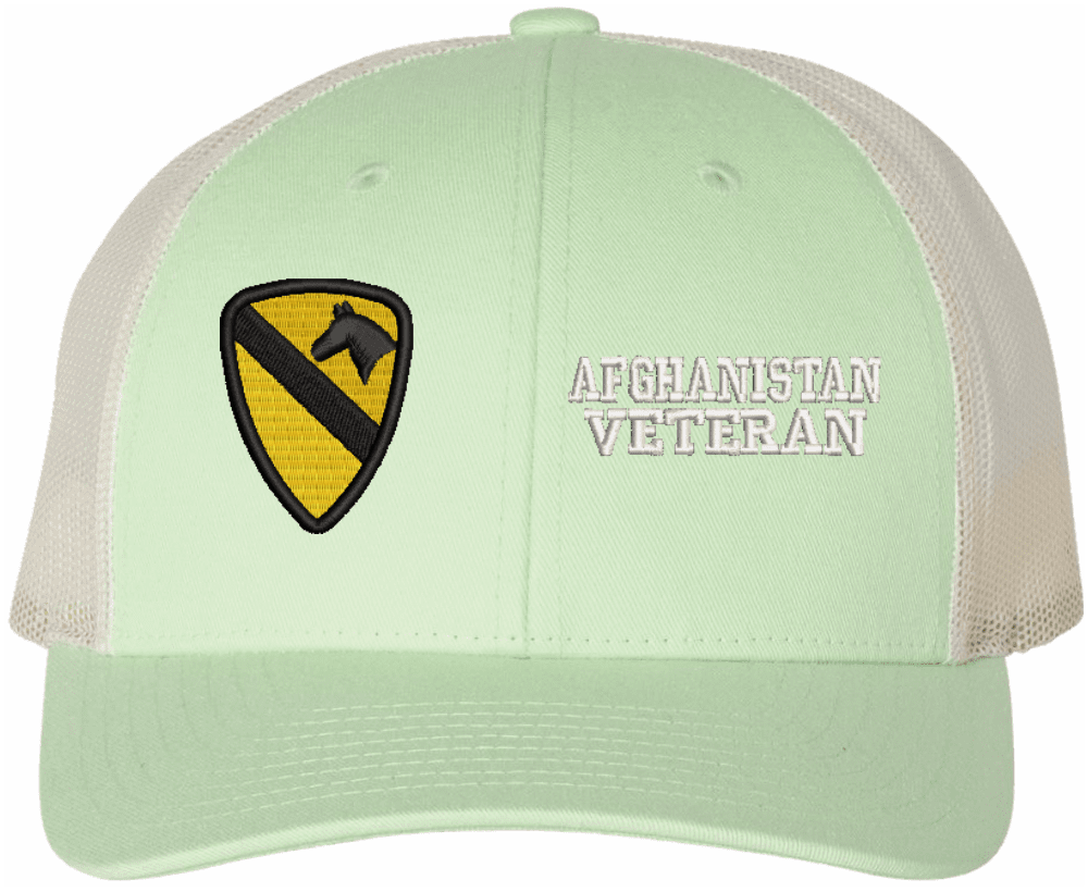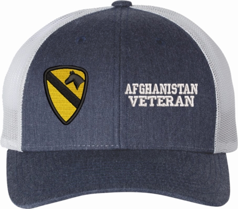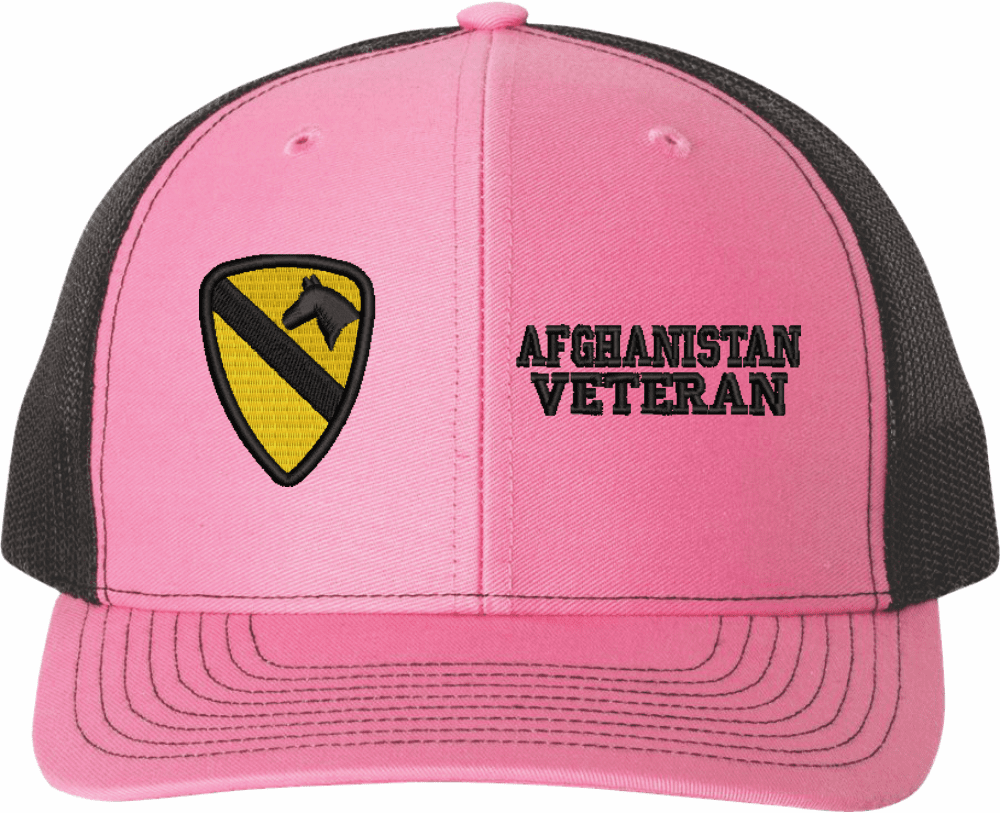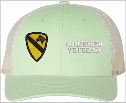 MilitaryBest is proud to offer this Mesh Back U.S. Army 1st Cavalry Division Afghanistan Veteran Women's Split-Cap. The design is embroidered onto a 6x panel mid/low profile mesh back cap and is crisp, clean, and sure to be loved by all! As with all MilitaryBest caps and apparel your satisfaction is guaranteed!Caps ordered with embroidered back text requires an additional 1 to 2 days of production time. All personalized caps will be embroidered in ALL CAPITAL LETTERS. Caps personalized with back text are not returnable unless there is a material defect in the cap.