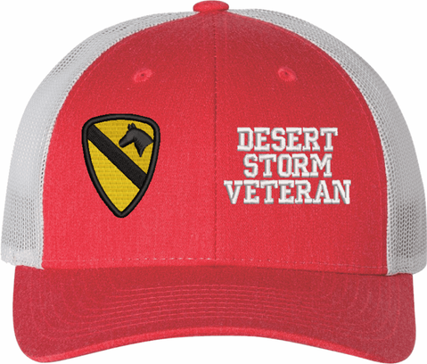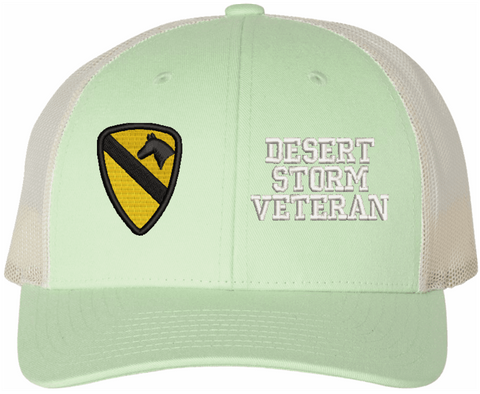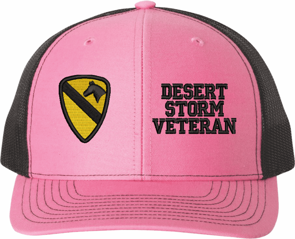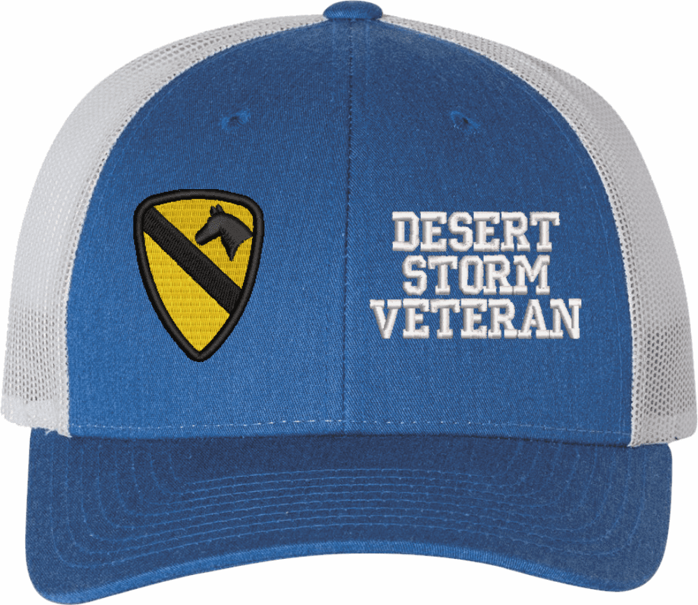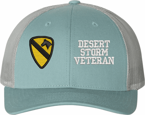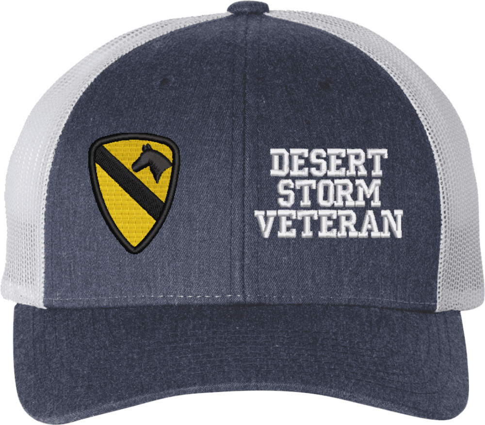 MilitaryBest is proud to offer this Mesh Back U.S. Army 1st Cavalry Division Desert Storm Veteran Women's Split-Cap. The design is embroidered onto a 6x panel mid/low profile mesh back cap and is crisp, clean, and sure to be loved by all! As with all MilitaryBest caps and apparel your satisfaction is guaranteed!Caps ordered with embroidered back text requires an additional 1 to 2 days of production time. All personalized caps will be embroidered in ALL CAPITAL LETTERS. Caps personalized with back text are not returnable unless there is a material defect in the cap.