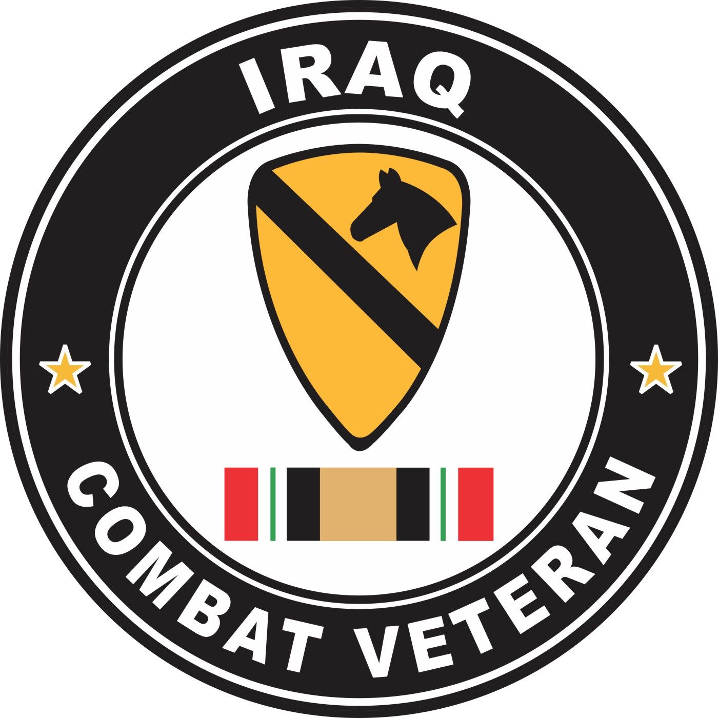 MilitaryBest is proud to offer this 1st Cavalry Division Iraq Combat Veteran Decal Made in the USA at our facilities in Scottsboro, Alabama using the finest ink and vinyl available. We have been producing high quality Military Decals for over 15 years and we guarantee the quality of each one. A portion of the sale of this decal goes to support the MWR (Morale, Welfare, & Recreation) programs of the different branches of the U.S. Military. For bulk pricing for custom and wholesale decals click here: Custom & Wholesale Decals!*While many of our customers use our decals on a variety of surfaces. Their intended purpose is for windshield applications