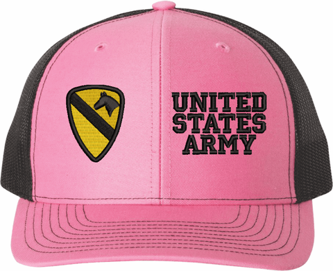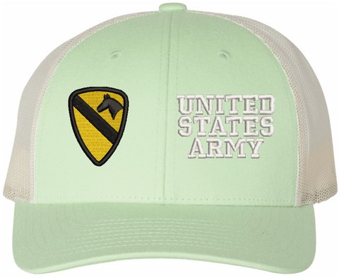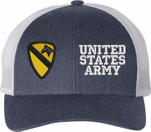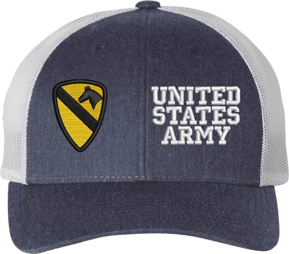 MilitaryBest is proud to offer this Mesh Back U.S. Army 1st Cavalry Division United States Army Women's Split-Cap. The design is embroidered onto a 6x panel mid/low profile mesh back cap and is crisp, clean, and sure to be loved by all! As with all MilitaryBest caps and apparel your satisfaction is guaranteed!Caps ordered with embroidered back text requires an additional 1 to 2 days of production time. All personalized caps will be embroidered in ALL CAPITAL LETTERS. Caps personalized with back text are not returnable unless there is a material defect in the cap.