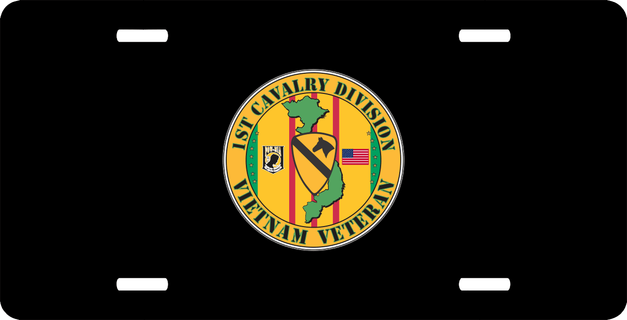 This 1st Cavalry Division Vietnam Veteran License Plate is made from heavy gauge aluminum and has a baked enamel finish to last for many years of use. Each plate measures 5 15/16" x 11 15/16". This license plate would make a wonderful addition to your collection or a great gift.