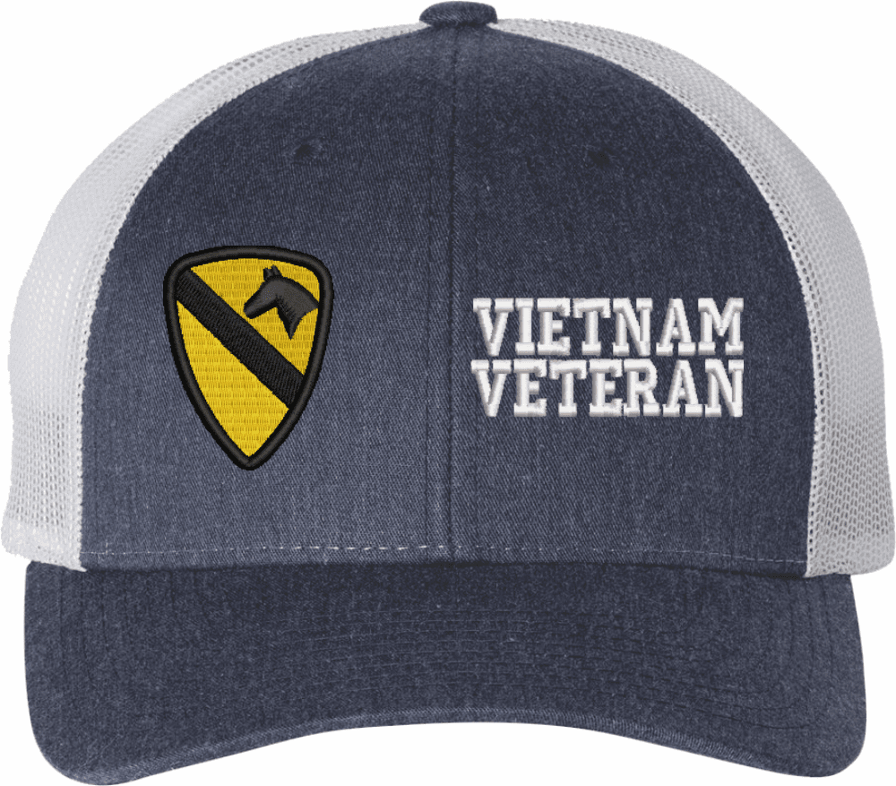 MilitaryBest is proud to offer this Mesh Back U.S. Army 1st Cavalry Division Vietnam Veteran Women's Split-Cap. The design is embroidered onto a 6x panel mid/low profile mesh back cap and is crisp, clean, and sure to be loved by all! As with all MilitaryBest caps and apparel your satisfaction is guaranteed!Caps ordered with embroidered back text requires an additional 1 to 2 days of production time. All personalized caps will be embroidered in ALL CAPITAL LETTERS. Caps personalized with back text are not returnable unless there is a material defect in the cap.