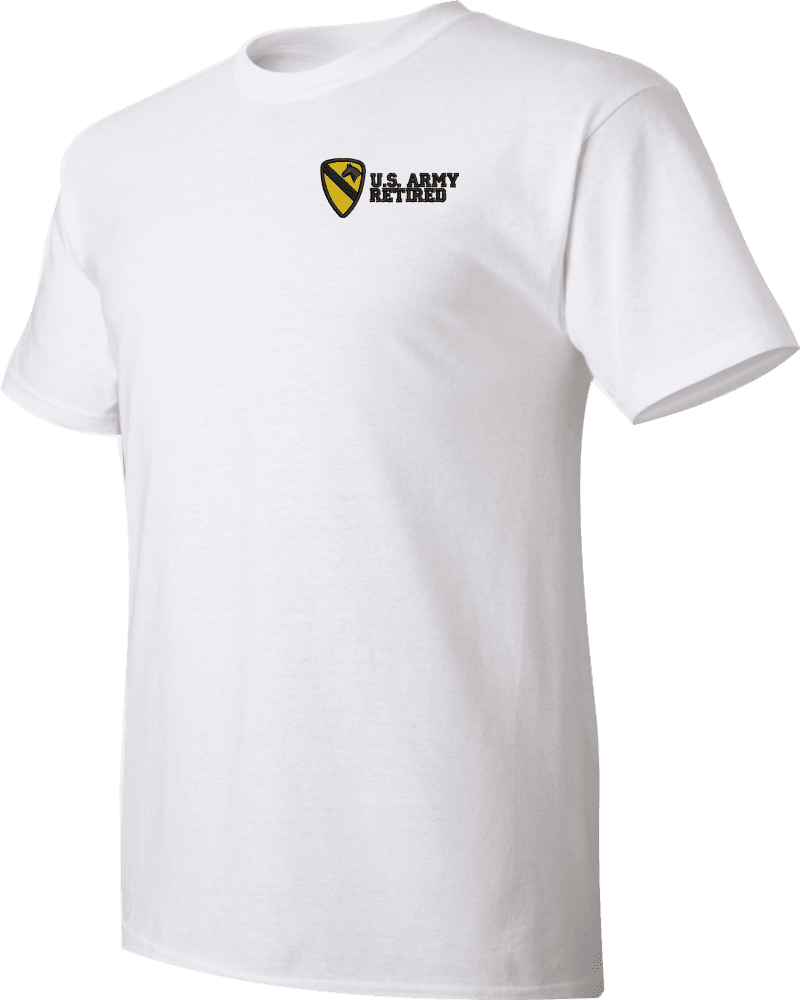 Note: Some of the Color Options pictured may not be available. Available Color Options are listed on the drop down menu above.MilitaryBest is proud to offer this quality 1st Cavalry Division Retired T Shirt. This Gildan brand short sleeve t-shirt is made using a 6 oz pre-shrunk 100% cotton material. These quality Military T Shirts are proudly embroidered at our facilities in Scottsboro, AL. Support the Army MWR program by purchasing only from Licensed Vendors.
