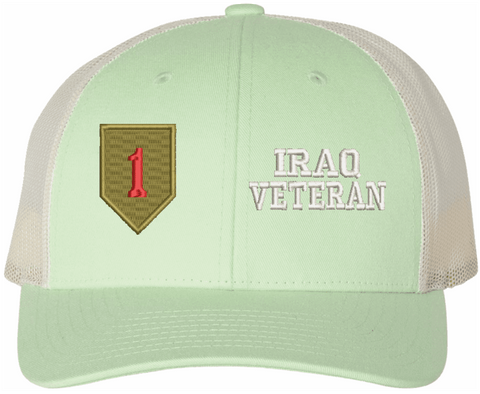 MilitaryBest is proud to offer this Mesh Back U.S. Army 1st Infantry Division Iraq Veteran Women's Split-Cap. The design is embroidered onto a 6x panel mid/low profile mesh back cap and is crisp, clean, and sure to be loved by all! As with all MilitaryBest caps and apparel your satisfaction is guaranteed!Caps ordered with embroidered back text requires an additional 1 to 2 days of production time. All personalized caps will be embroidered in ALL CAPITAL LETTERS. Caps personalized with back text are not returnable unless there is a material defect in the cap.